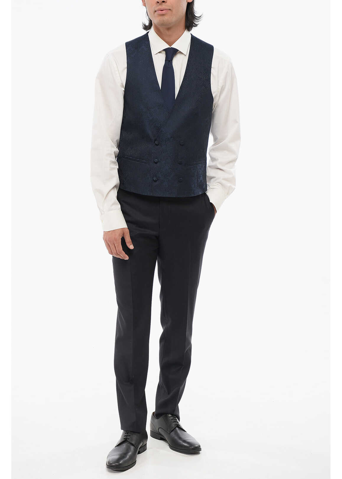 Code Double -Brested Vest With Damasked Motif