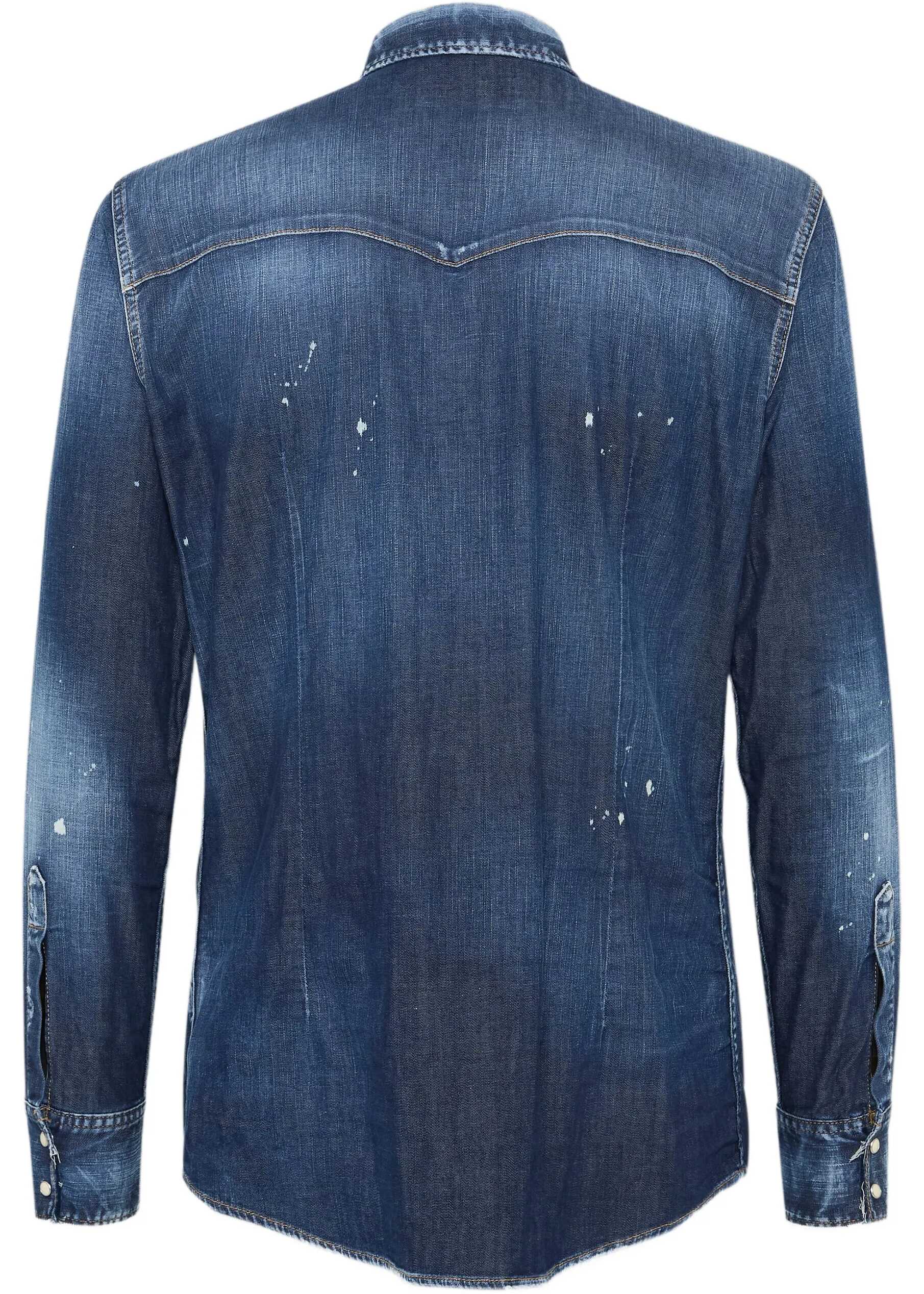 Dsquared2's Fashion Western shirt combines classic Western style with an urban, lived-in aesthetic. Made of cotton denim with a vintage worn-effect design, it features a classic collar, front button closure and adjustable button cuffs. The two flap pockets on the chest complete the look with an authentic touch. A garment with a strong character, perfect for those seeking a distinctive and contemporary style.