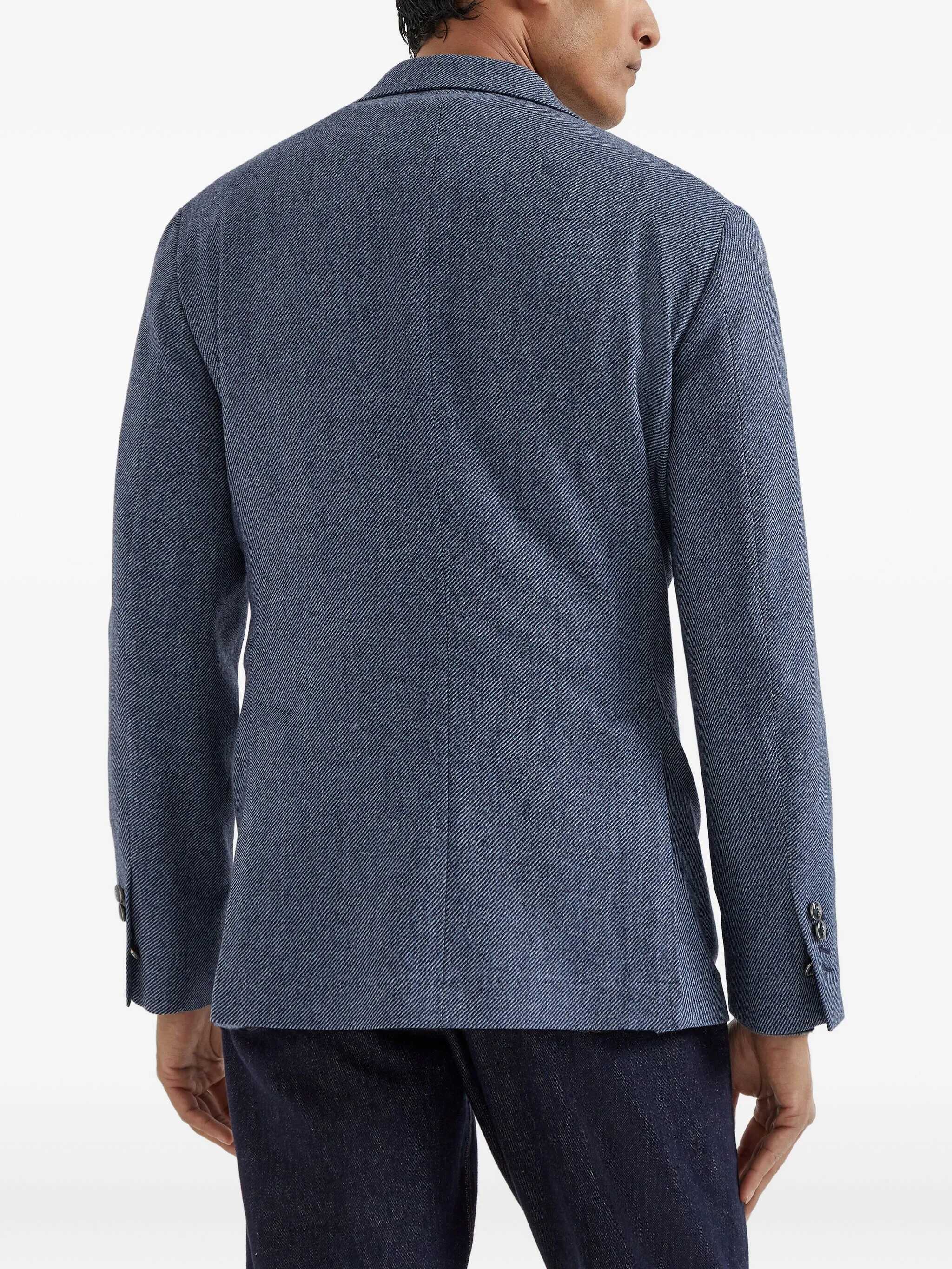 Brunello Cucinelli's Wool Blazer Jacket is an elegant and sophisticated piece, featuring a classic lapel that lends a touch of sophistication. It features a breast pocket on the front and two flap pockets for a practical and distinctive look. The two slits at the back ensure a comfortable fit and greater freedom of movement. The striped pattern adds an element of style, making this jacket ideal for a formal look but with a modern twist.