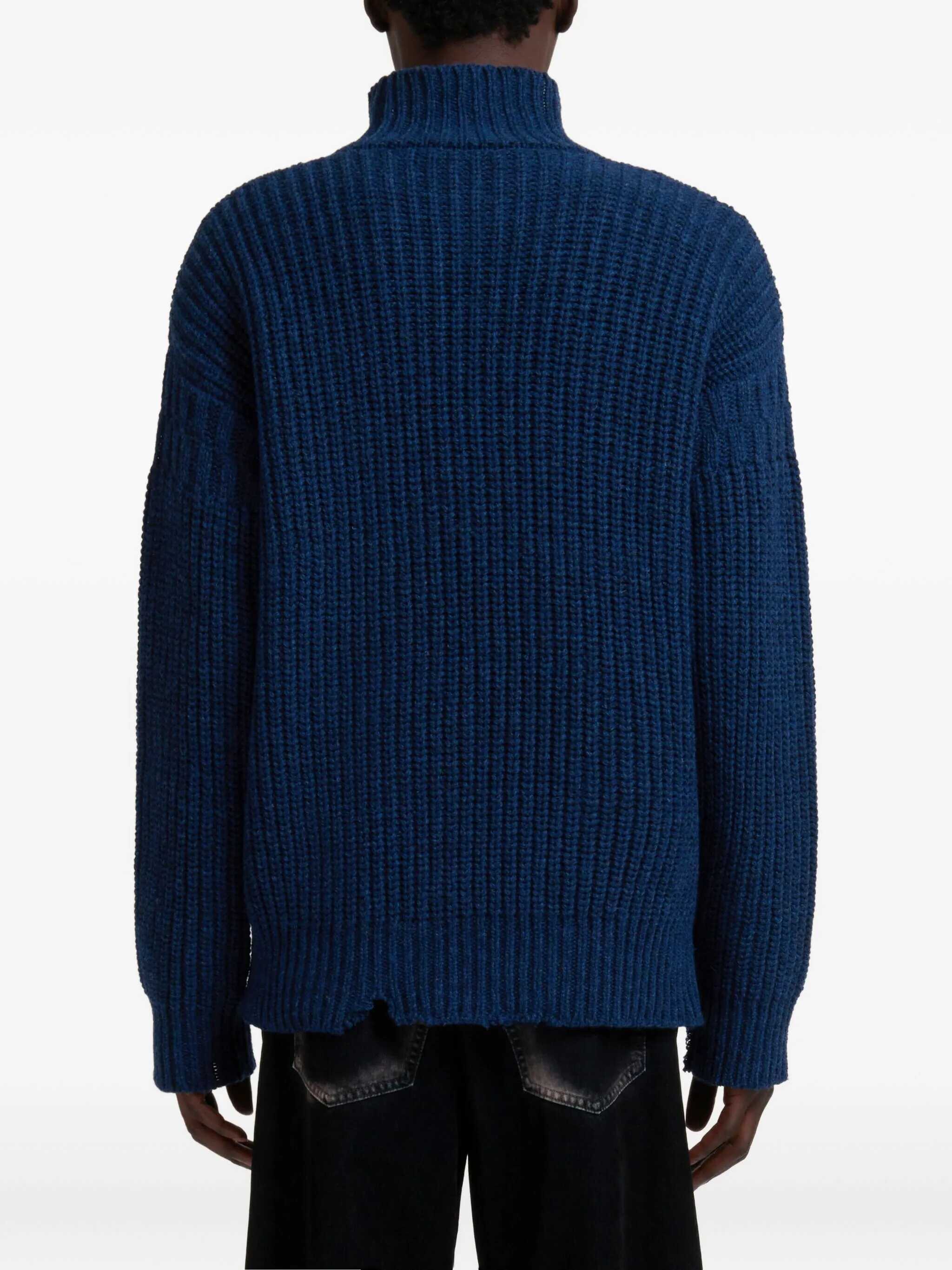 Marni pure wool Sweater features a monochrome design with all-over worn-effect knit fabric. The design features a turtleneck, ribbed cuffs and hem, and an oversized fit for a contemporary, relaxed look. A breast pocket with the iconic Marni monogram embroidered in contrast is applied on the front, a distinctive detail that adds character to the garment. A bold and sophisticated sweater, perfect for a sophisticated urban style.