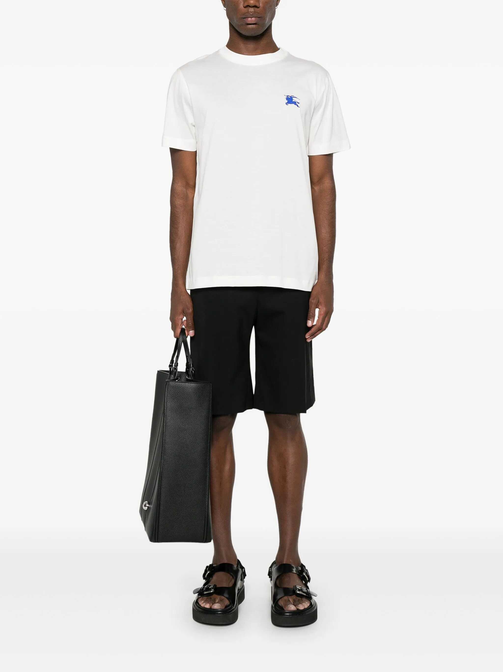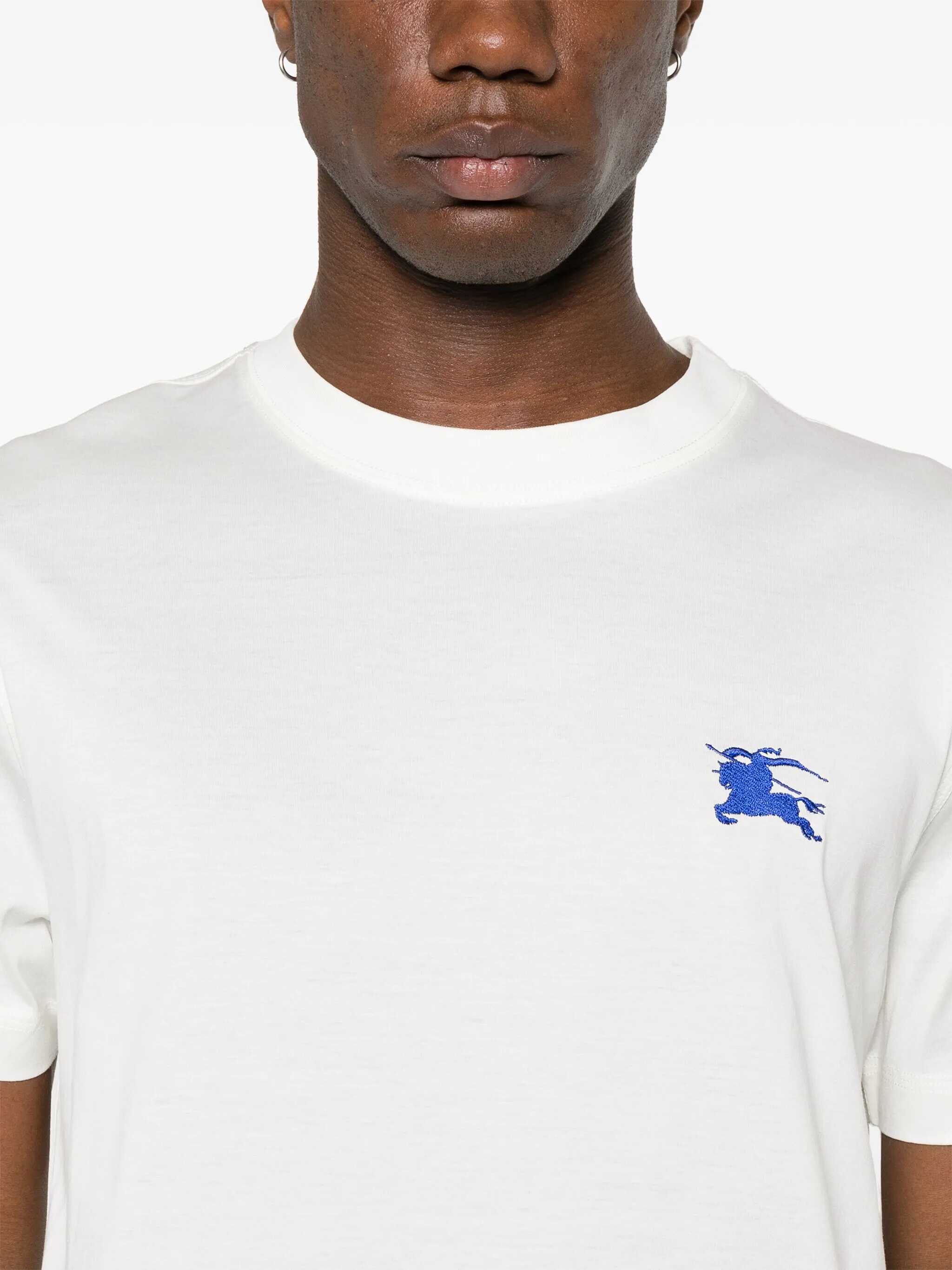 Discover the white Burberry T-shirt in organic cotton, with iconic Equestrian Knight embroidery. Soft and sustainable, with a crew-neck cut, it combines comfort and sophisticated style. Add it to your wardrobe and experience timeless elegance.