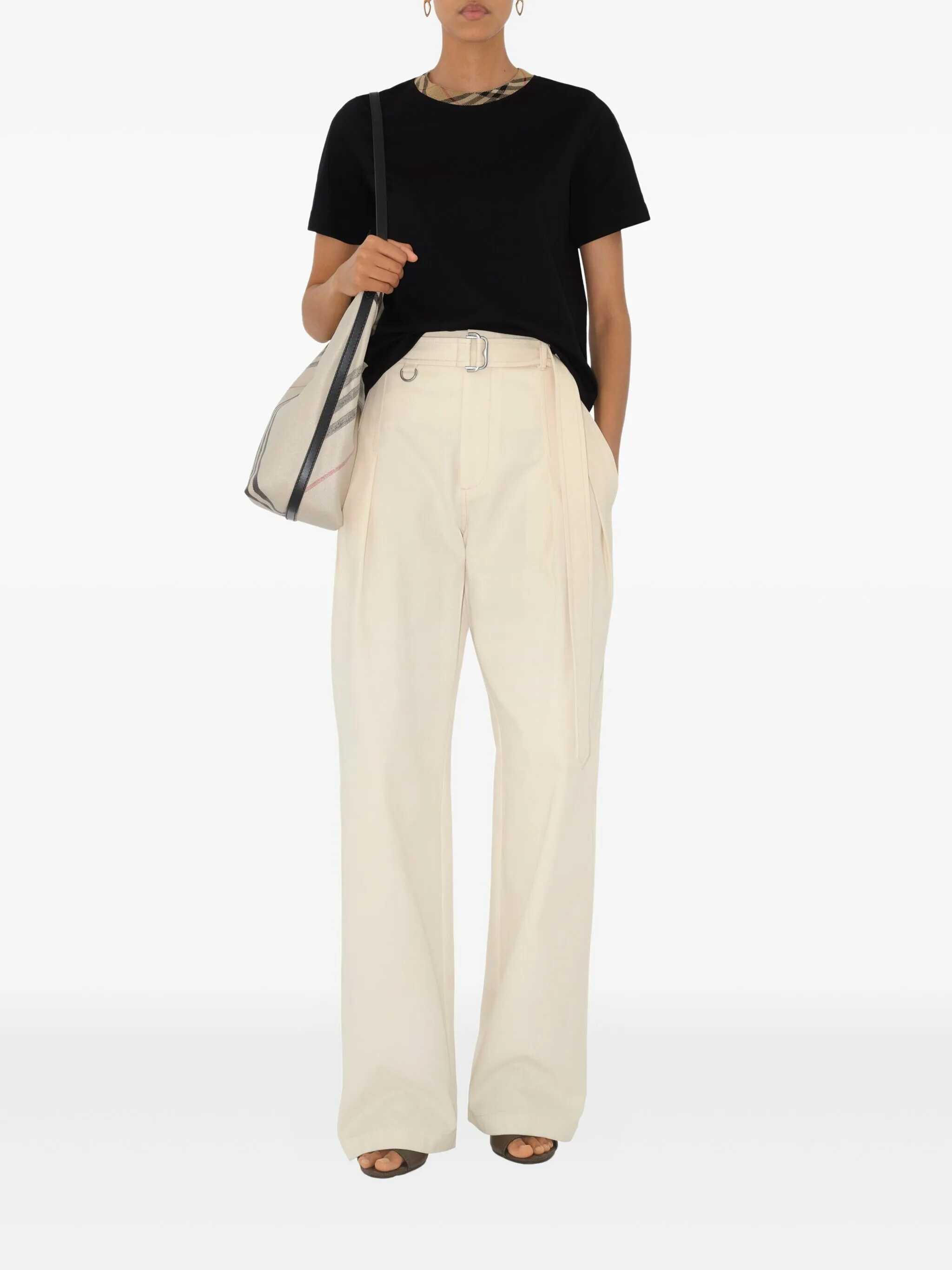Black pure cotton T-shirt with refined Burberry plaid hemline. Minimal design with round neckline and short sleeves, perfect for a smart casual look. It enhances your iconic style. Shop now and stand out with class.