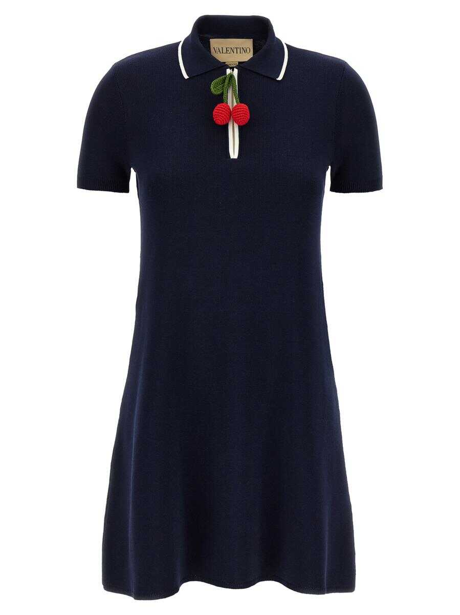 Cotton knit polo mini dress with contrast details and a crochet 'Cherryfic' zipper puller, A-line silhouette, and short sleeves