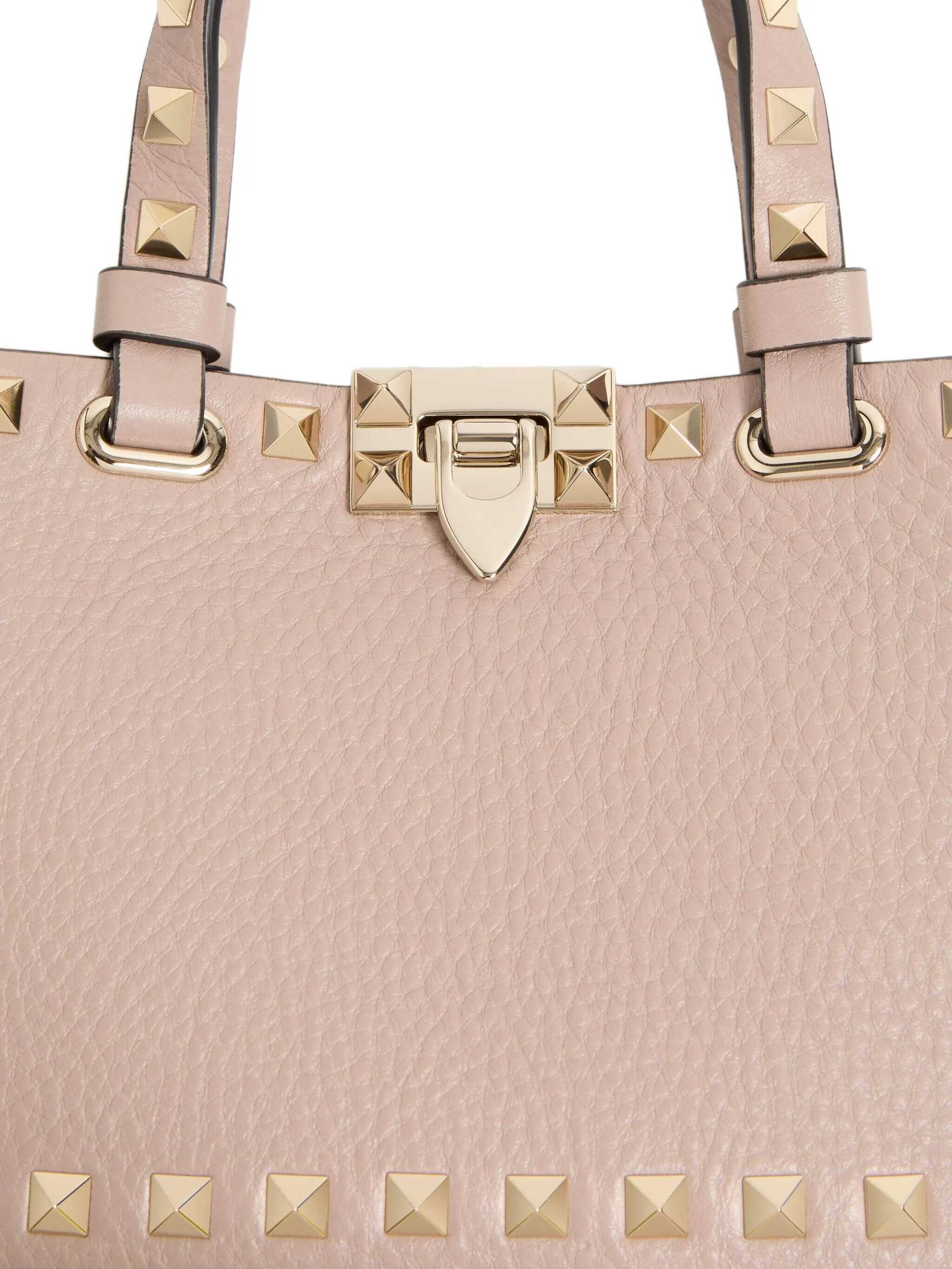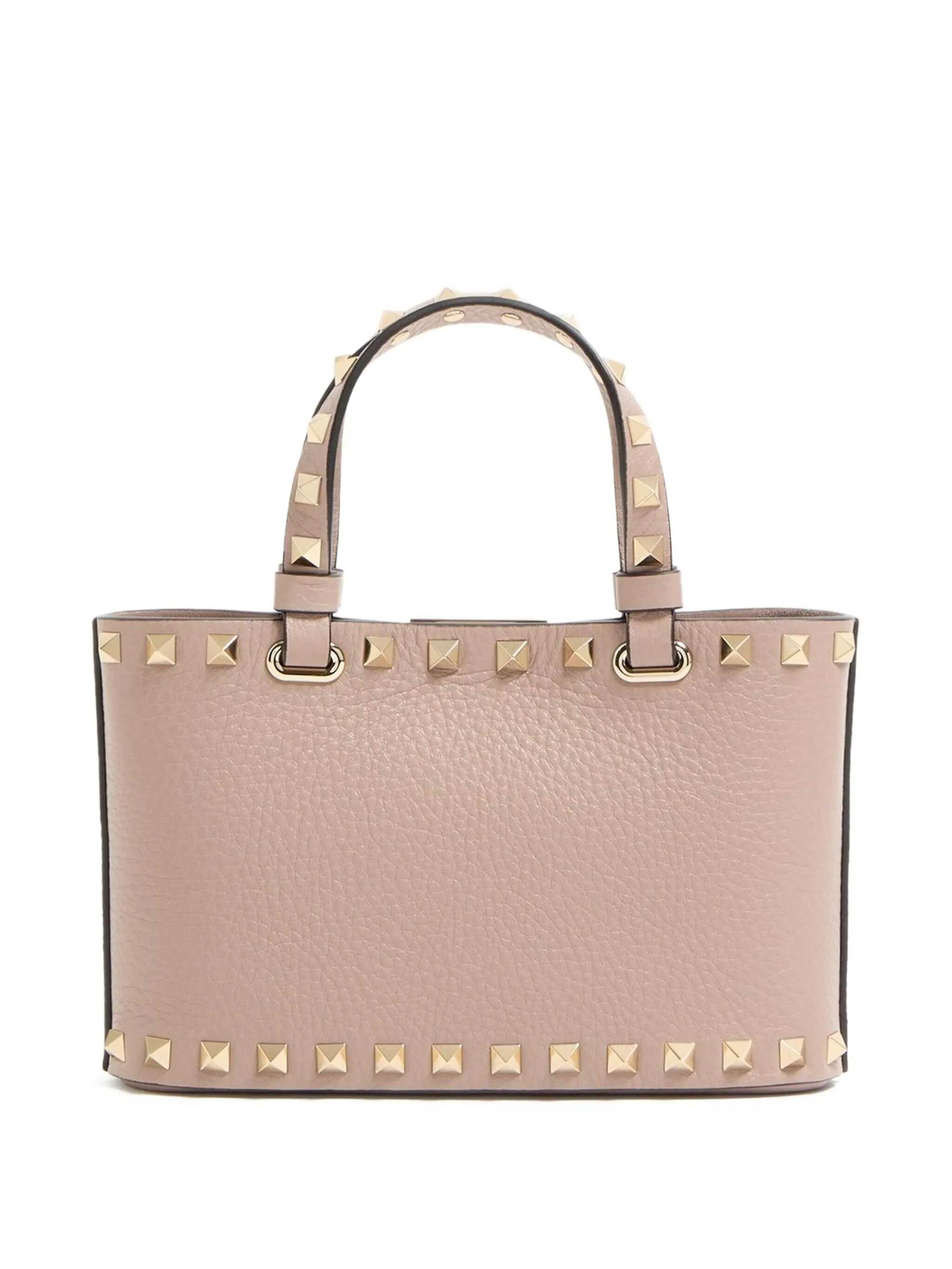 'Rockstud' mini crossbody bag in garnet calfskin with metal stud applications, double fixed handle, hook closure, removable chain shoulder strap