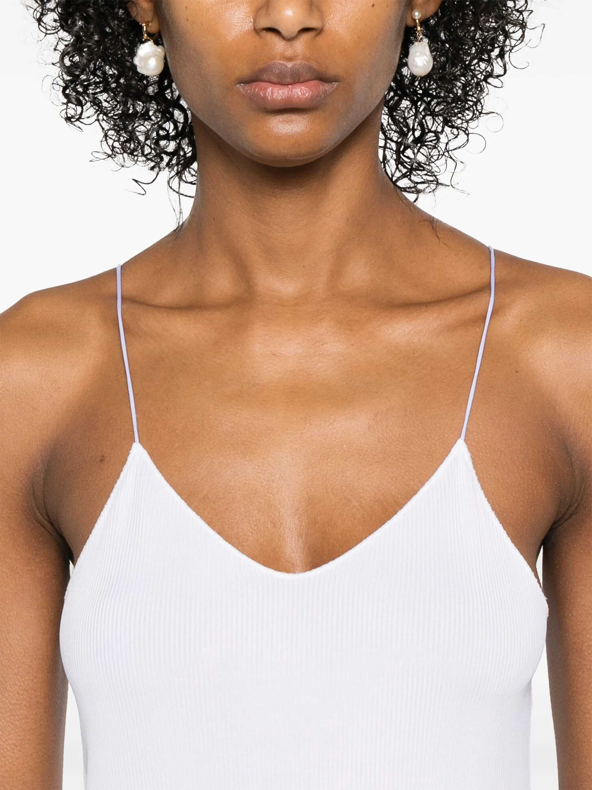 Forte_Forte's Ribbed Top is an essential and sophisticated garment designed to naturally enhance the silhouette. Made from a fine-ribbed fabric, it features a slightly V-neckline and thin straps that add elegance and lightness to the look. The asymmetric hemline adds a modern and dynamic detail, making the top perfect either as an under-layer or worn alone for a minimal, feminine style.
