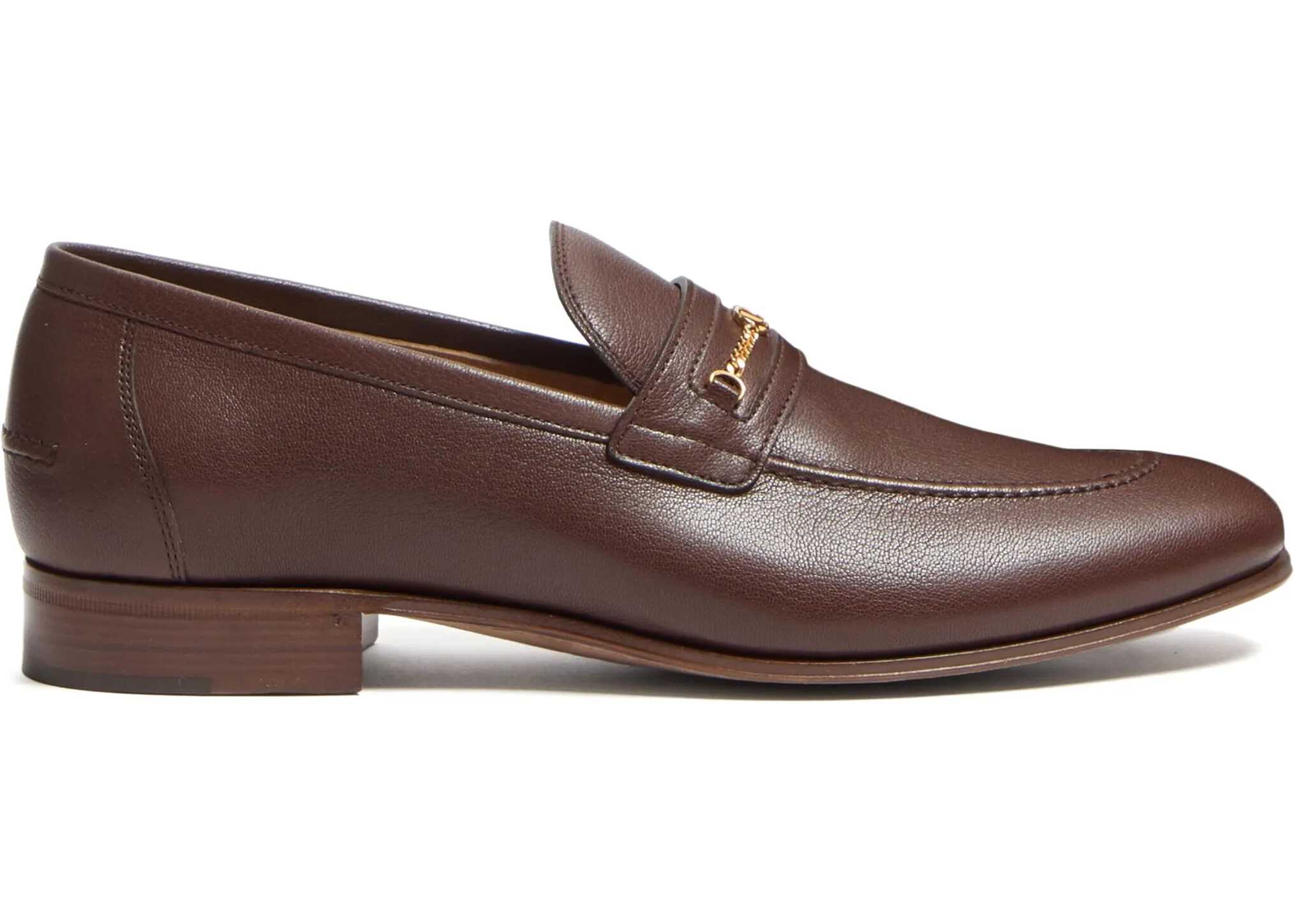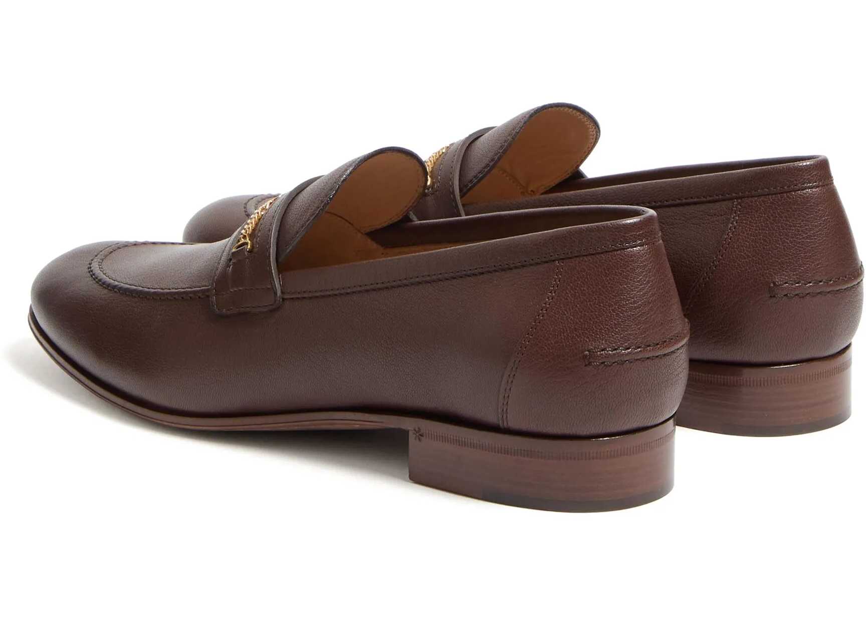 Valentino Garavani's leather Loafers combine classic elegance with iconic details. Featuring an almond toe silhouette, they are embellished with a golden VLogo chain appliqué on the front, which lends a distinctive touch to the design. The leather block heel ensures stability and comfort, while the branded insole completes the model with a refined detail.