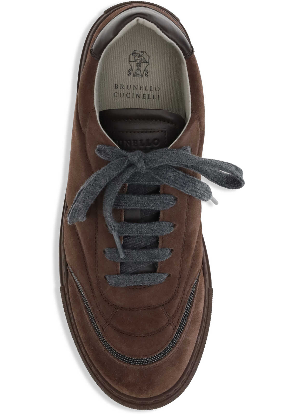 Brunello Cucinelli's Suede Sneakers combine comfort and sophistication in an essential yet refined design. Featuring a flat rubber sole and rounded toe, they feature a lace-up closure that ensures a practical fit. Details with iconic shiny jewels add a bright and distinctive touch, an expression of the brand's unmistakable elegance.