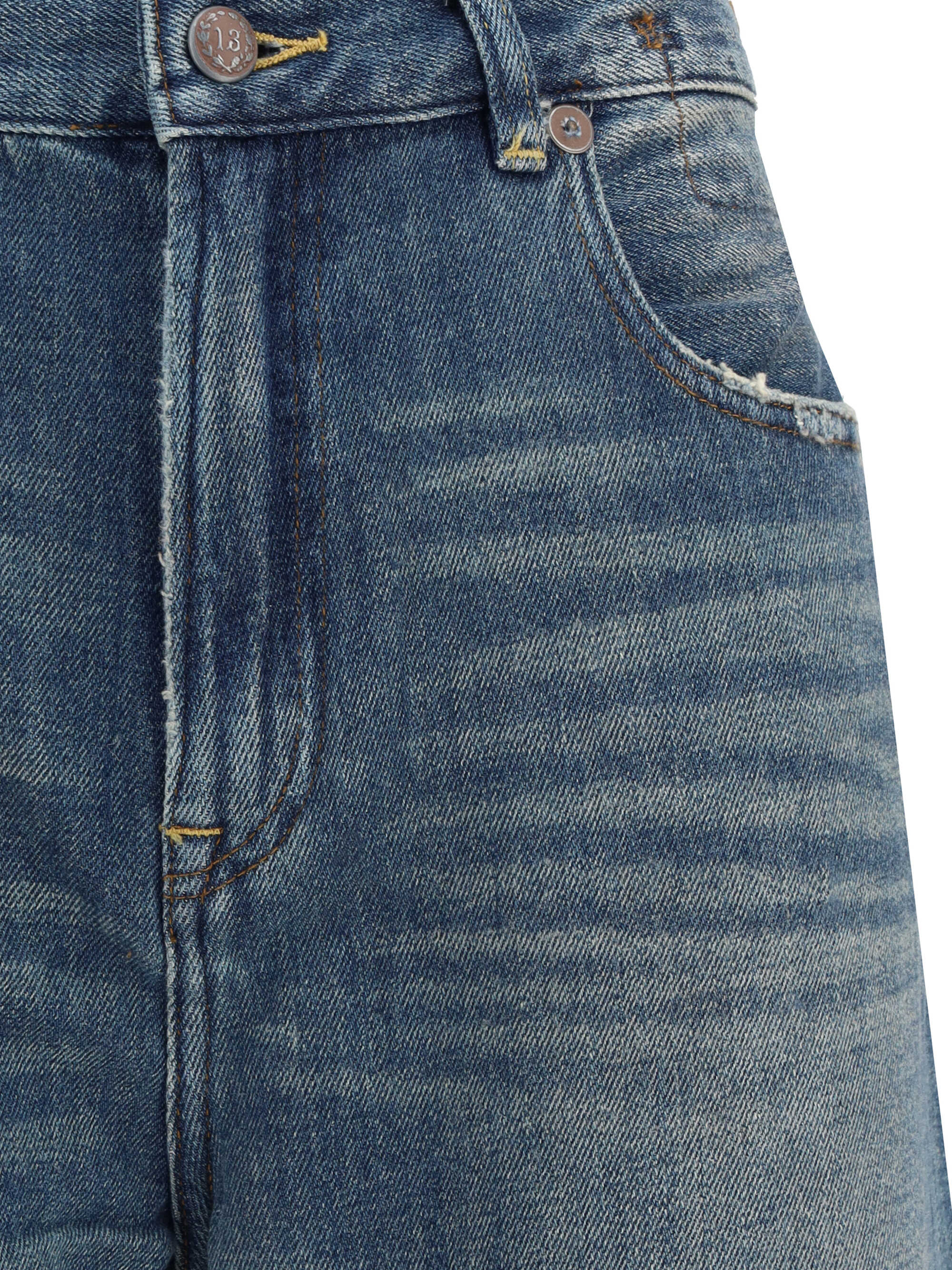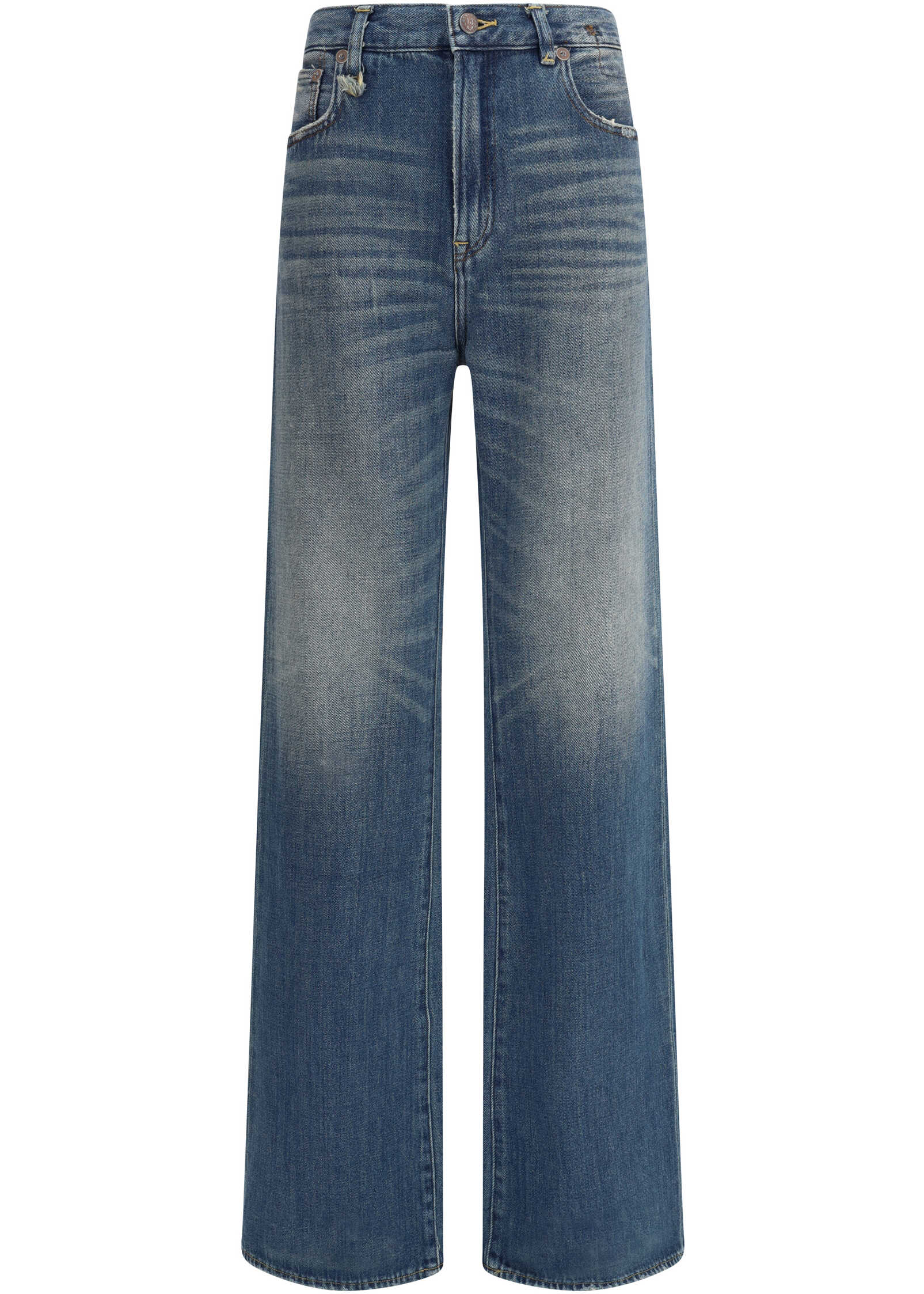 R13's Jane Jeans reinterpret the classic flare pattern with a contemporary, punchy twist. Featuring a traditional five-pocket construction, they have a waistband with belt loops and a front zipper and button closure. The flared cut flatters the figure, making them a versatile garment perfect for creating both casual and sophisticated looks.