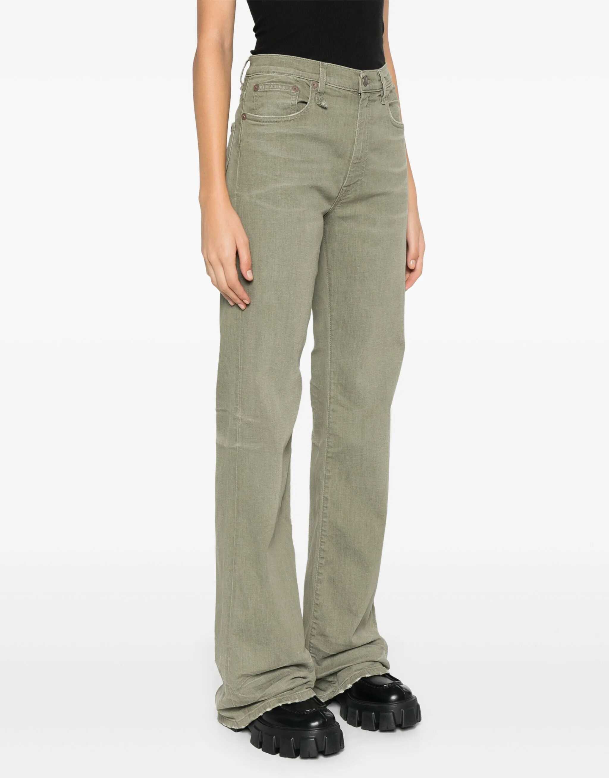 R13's Jane Jeans reinterpret the classic flare pattern with a contemporary, punchy twist. Featuring a traditional five-pocket construction, they have a waistband with belt loops and a front zipper and button closure. The flared cut flatters the figure, making them a versatile garment perfect for creating both casual and sophisticated looks.