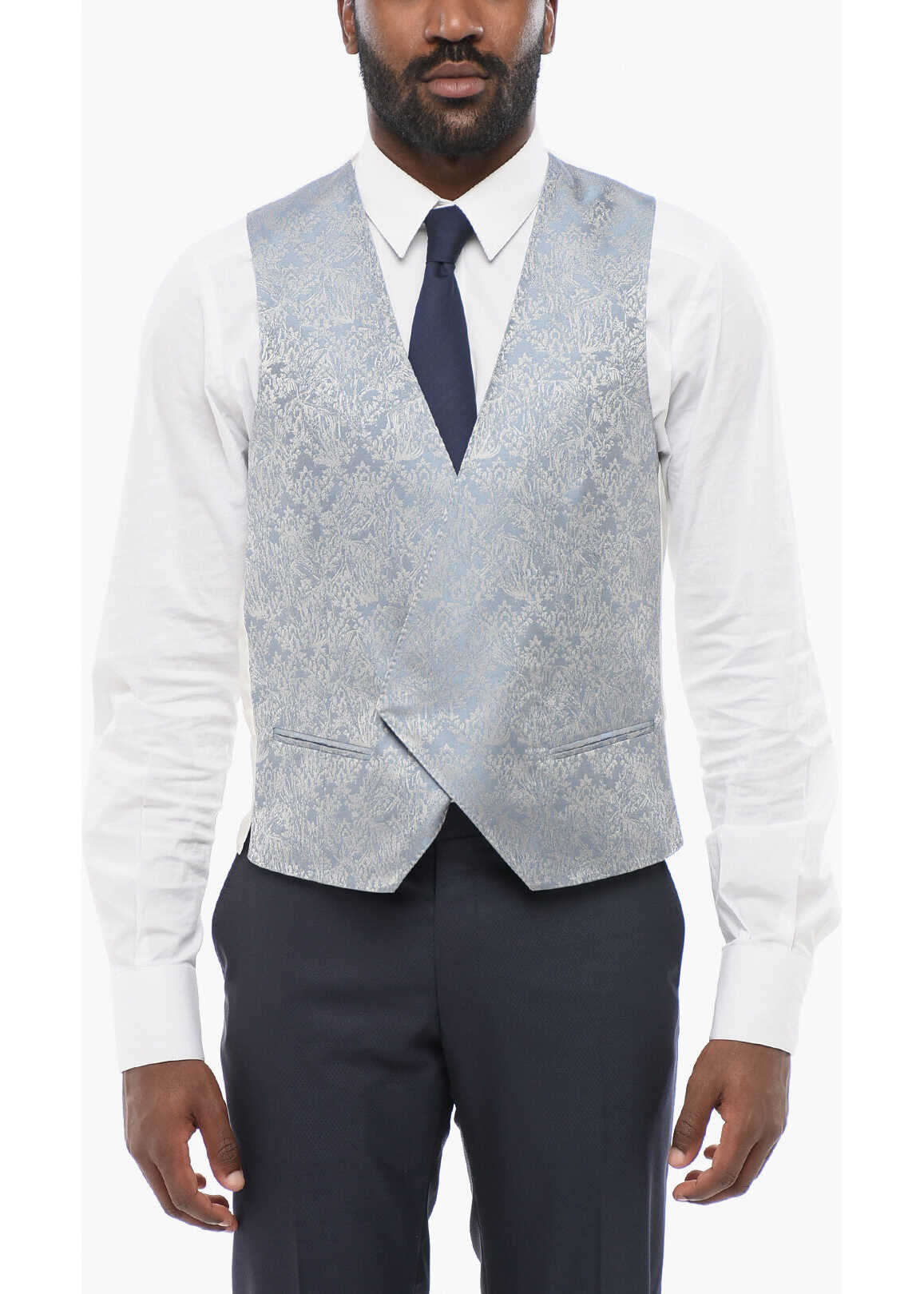 Embroidered Silk Double Breasted Vest With Jetted Pockets