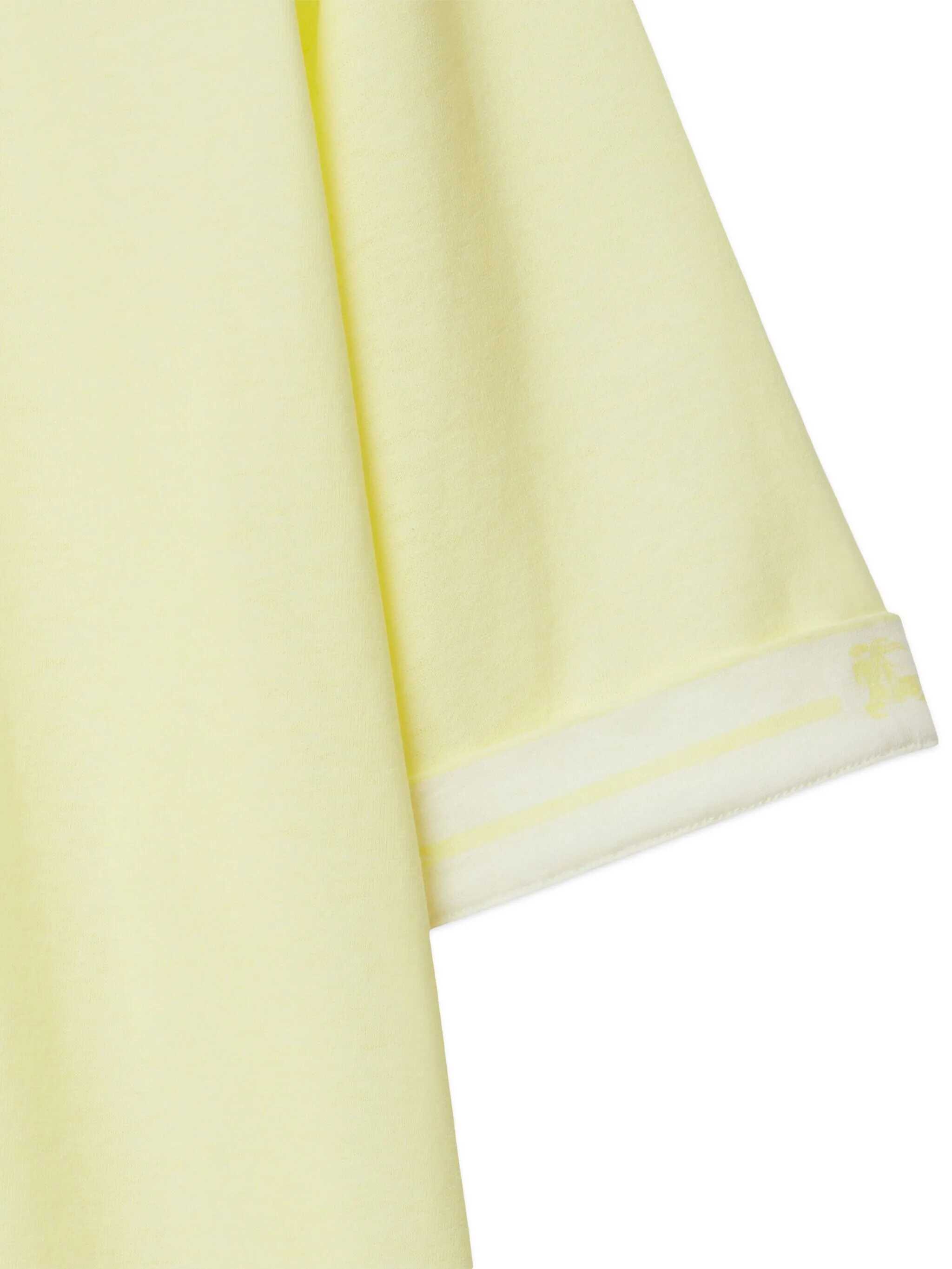 Burberry t-shirt crafted from pastel yellow cotton jersey. Designed with a crew neckline, short sleeves, and a straight hem.