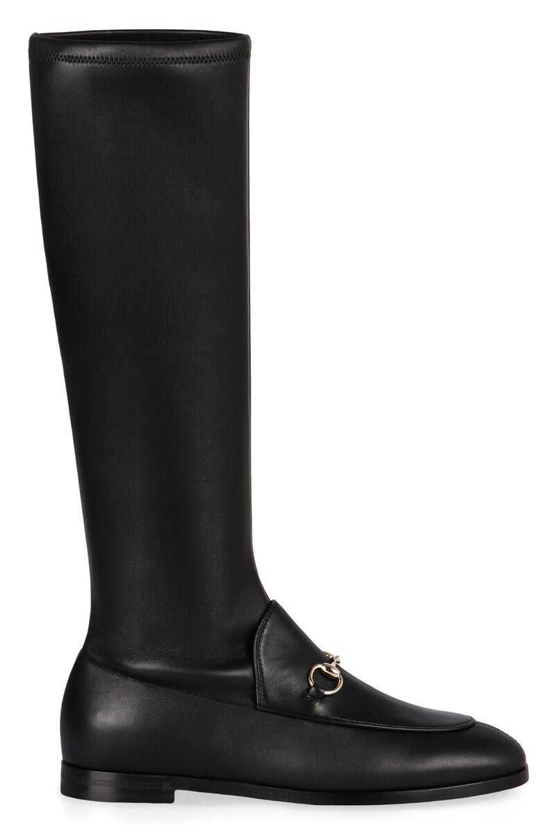 Gucci boots crafted in black nappa leather, featuring the unmistakable Horsebit detail in light gold-tone metal. Designed with a side zip closure, round toe, leather-lined interior, and leather sole.