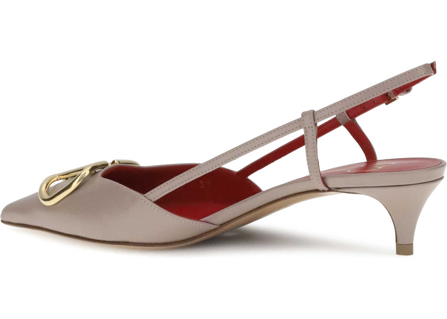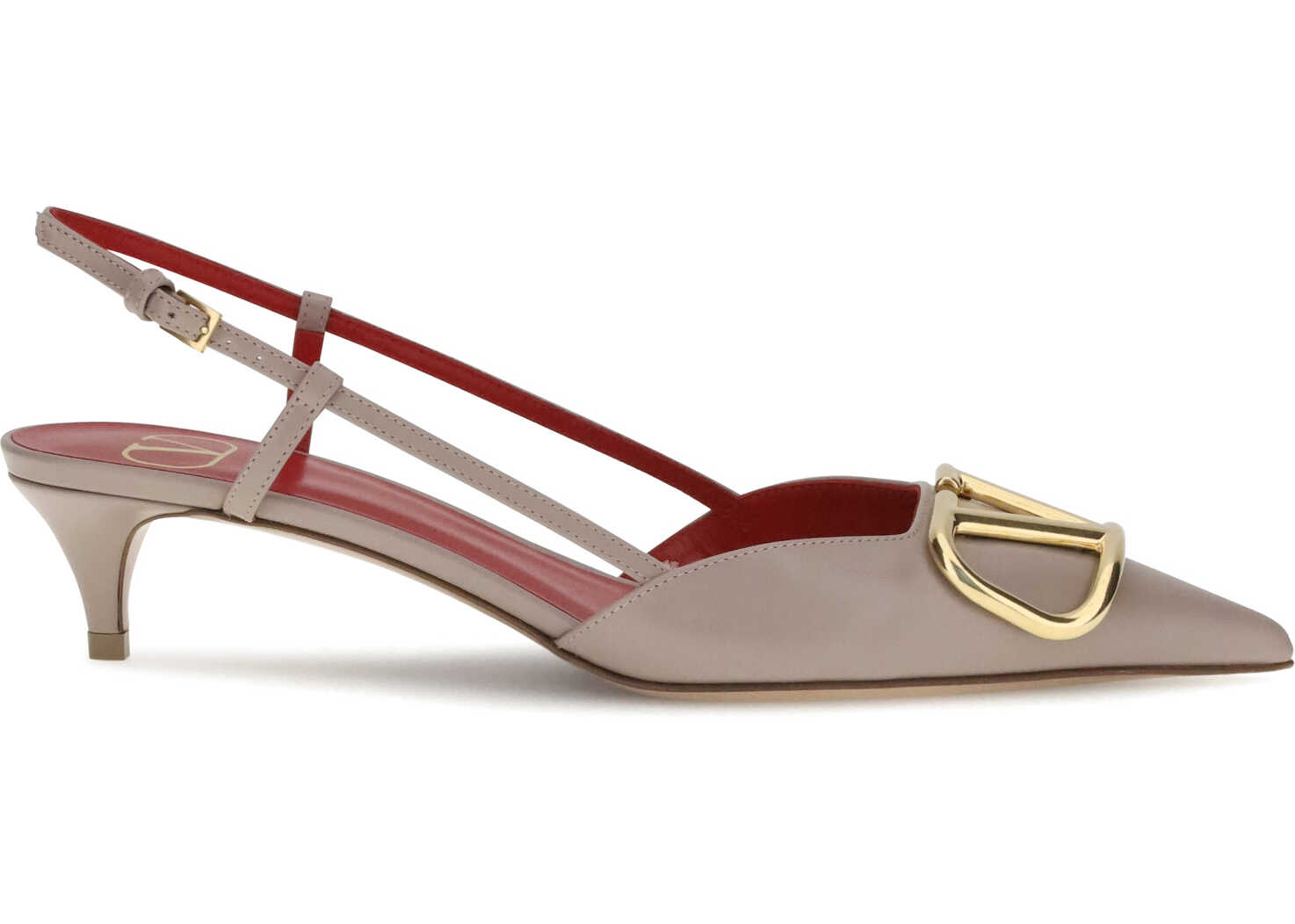 Valentino Garavani's Décolleté Pumps represent an elegant and sophisticated interpretation of the classic slingback model. Featuring a back closure with an adjustable buckle, they have an elongated toe and a delicate kitten heel, ideal for refined comfort. The golden plaque with the brand's iconic logo applied on the front emphasizes their luxury and sophistication, making every step a gesture of exclusive style.