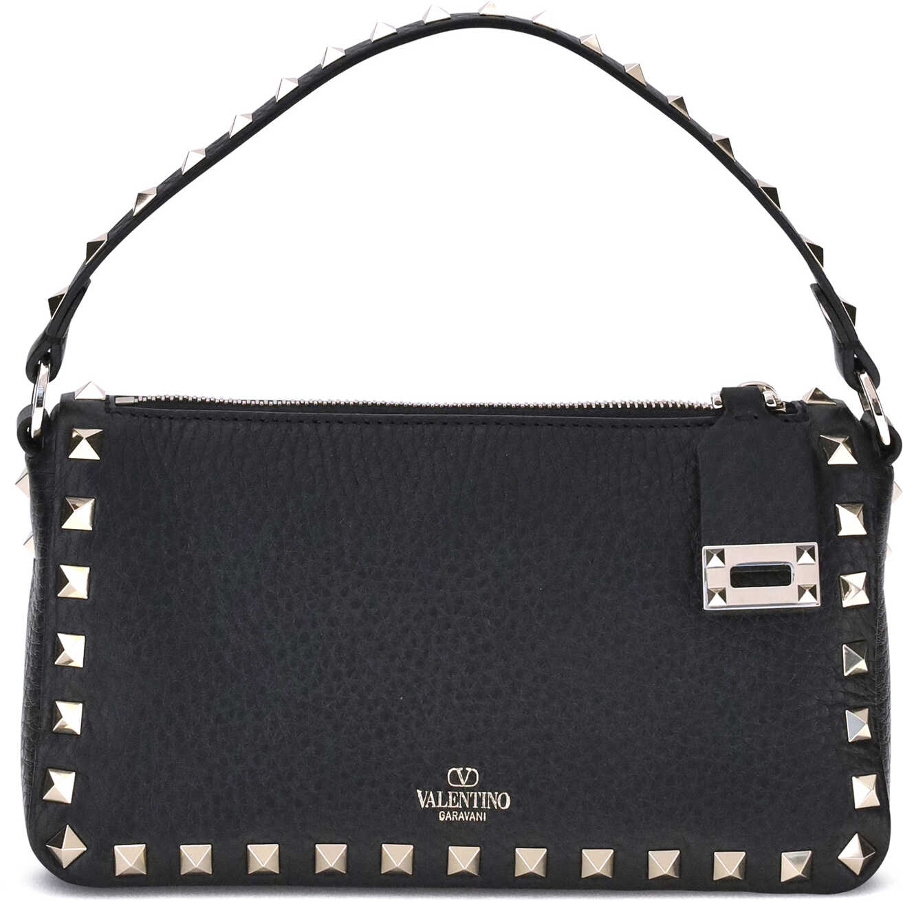 Valentino's Rockstud Zip-Up Shoulder Bag embodies bold and gritty elegance. Featuring a fully studded handle, it has an adjustable and removable shoulder strap that expands its versatility. The top zipper closure ensures practicality, while the studded edges and iconic signature press-stamped front confirm the Maison's signature style.