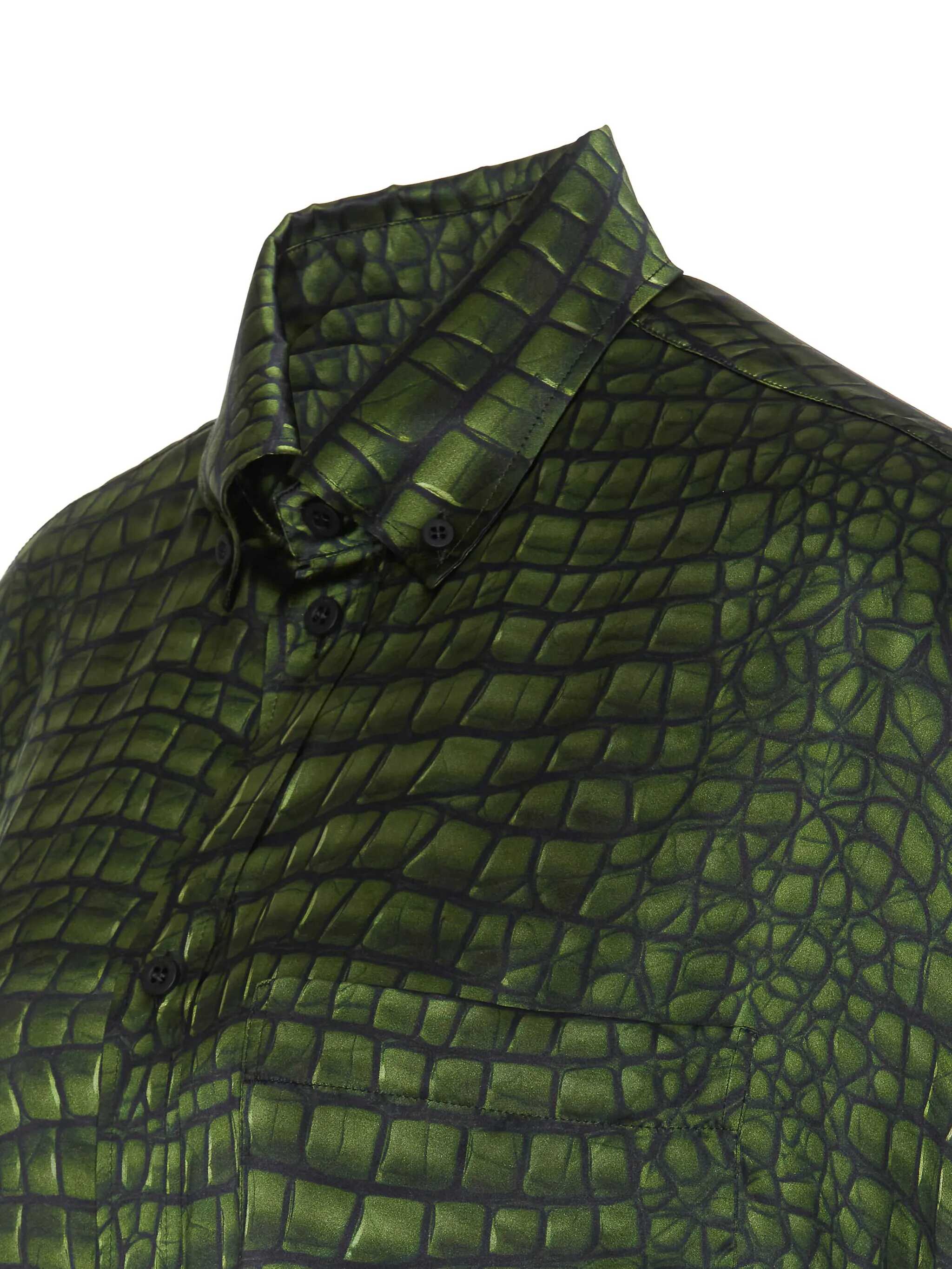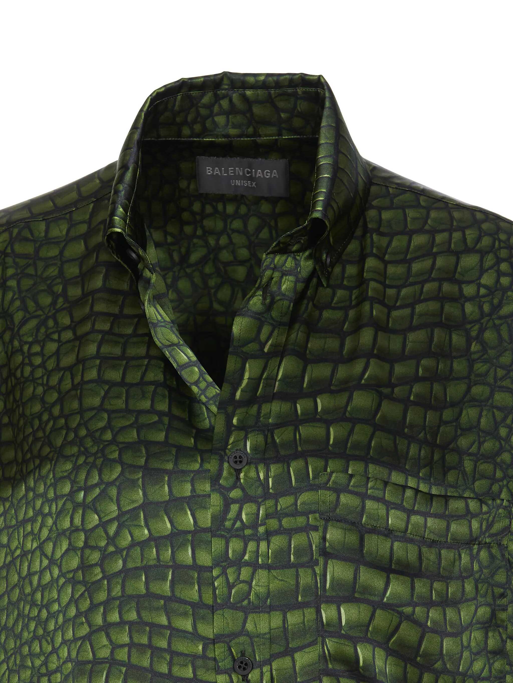 Balenciaga Green Cocoon Shirt With Frontal Buttons Closure, Regular Collar, Long Sleeves, Button On Cuffs, Printed, US SIZE
