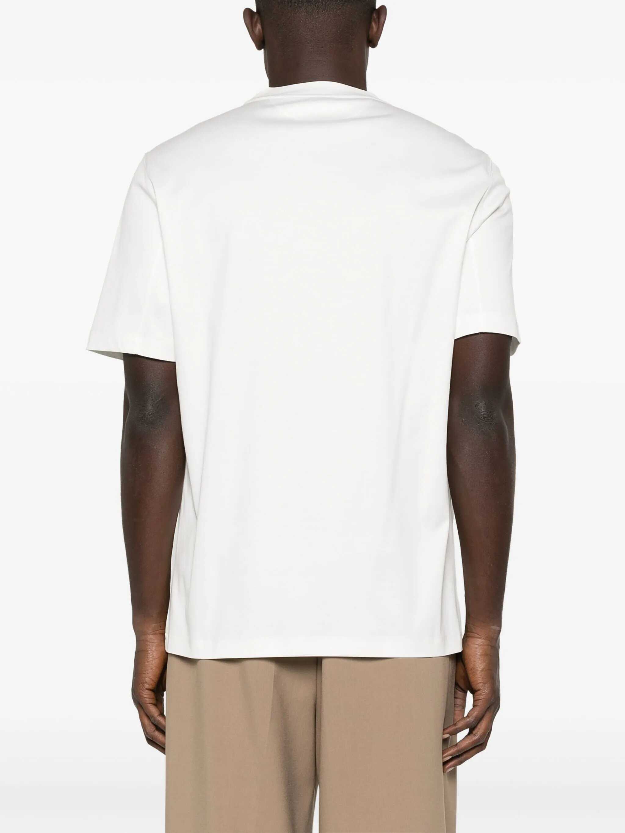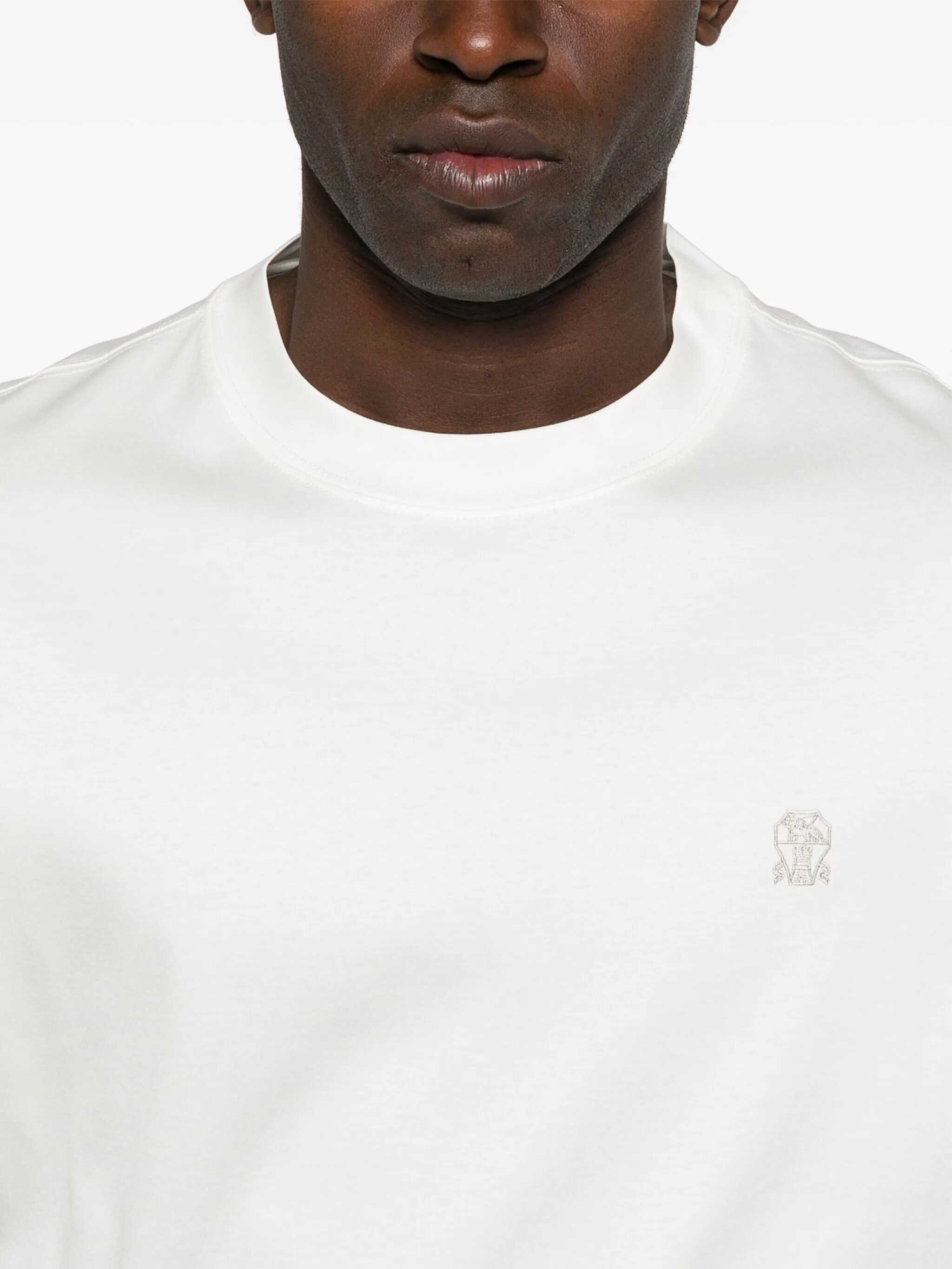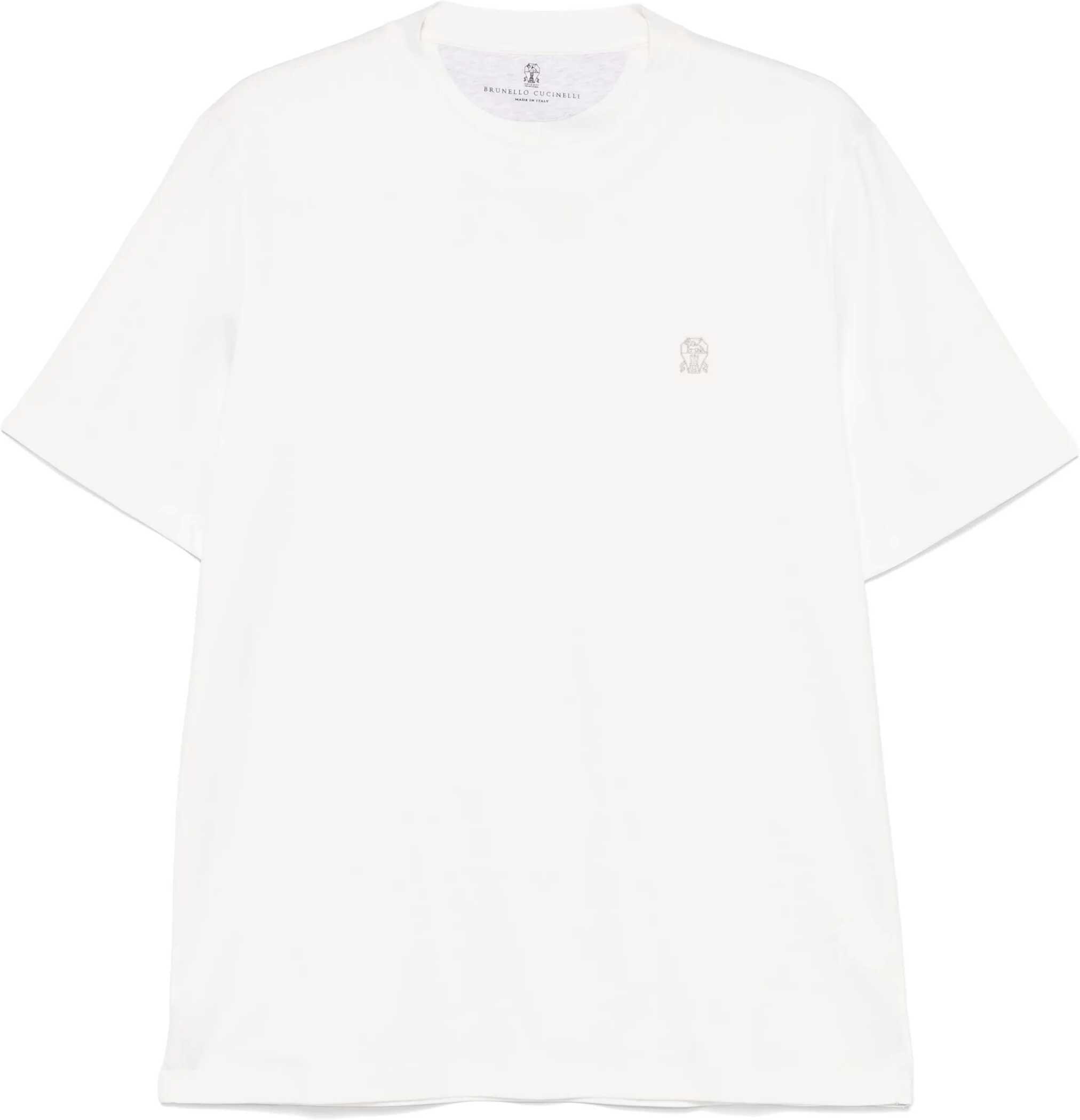 The Brunello Cucinelli cotton T-Shirt is an elegant and simple yet refined garment, perfect for those seeking comfort and style. The monochrome design suggests a clean and versatile look, suitable for various combinations. The contrasting logo on the front, typical of the brand, adds a distinctive touch without being too obtrusive, maintaining elegance.