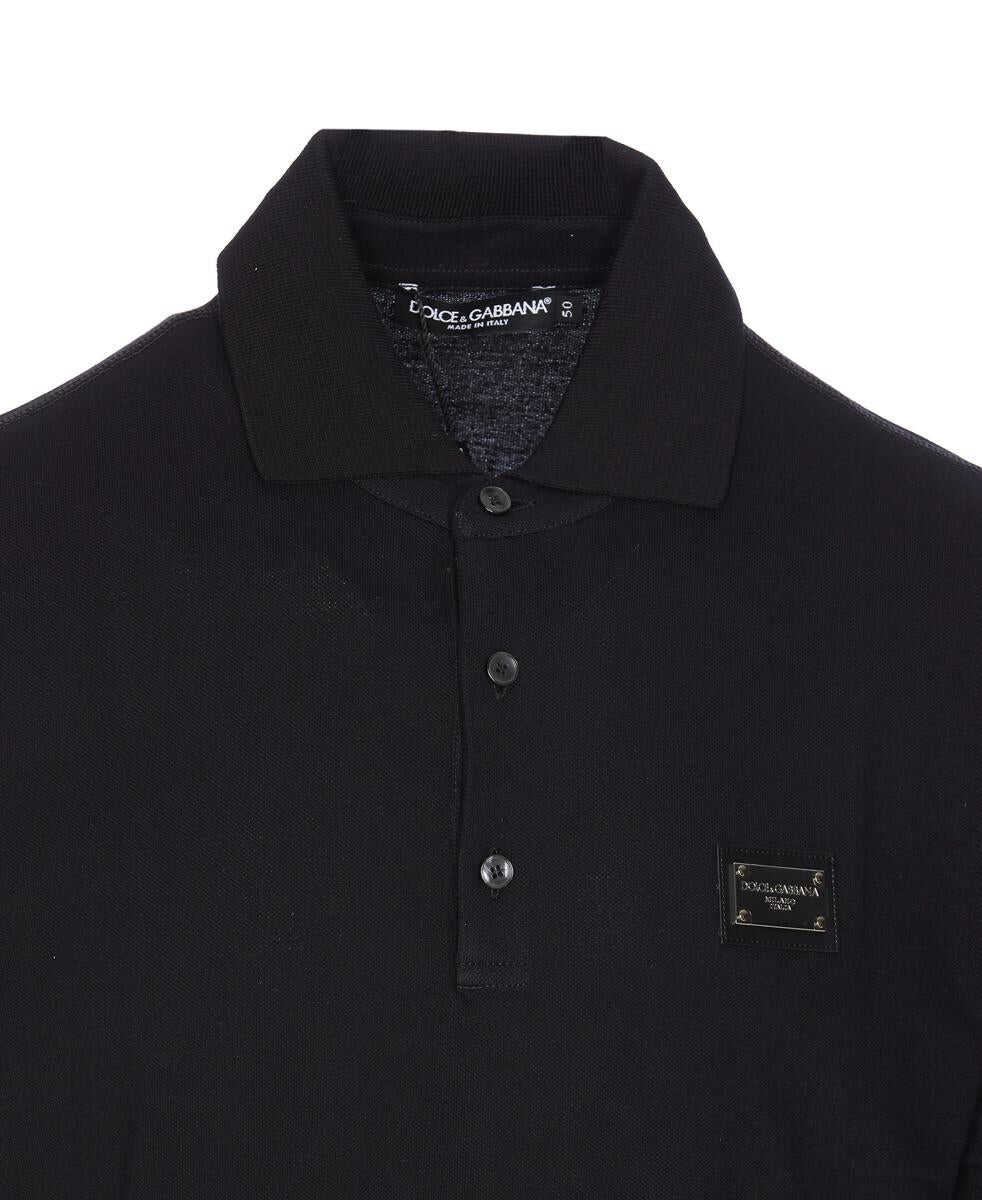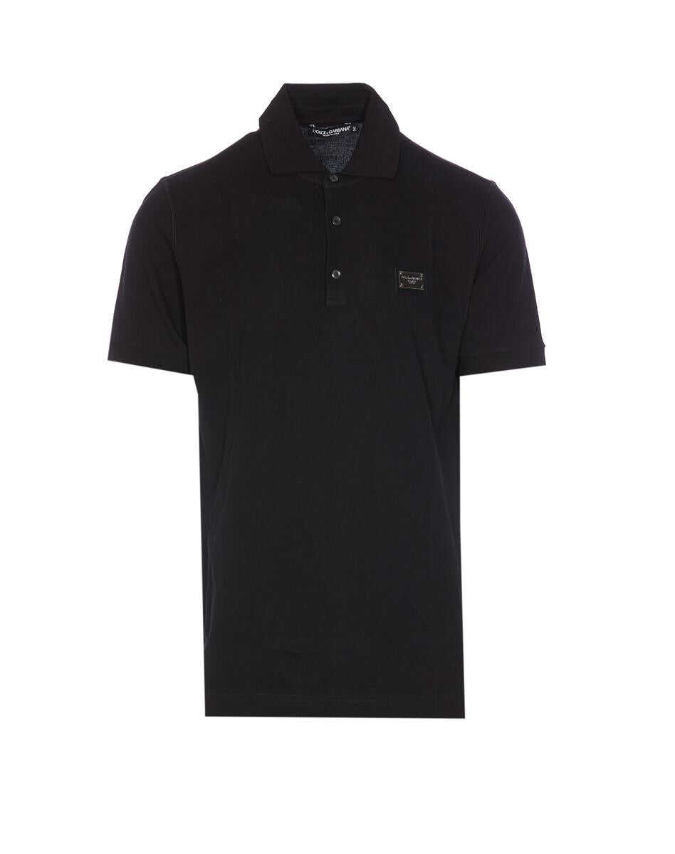 Dolce&Gabbana Black Polo, Regular Collar, Buttons Closure, Plaque Logo On The Front, EU SIZE (IT)