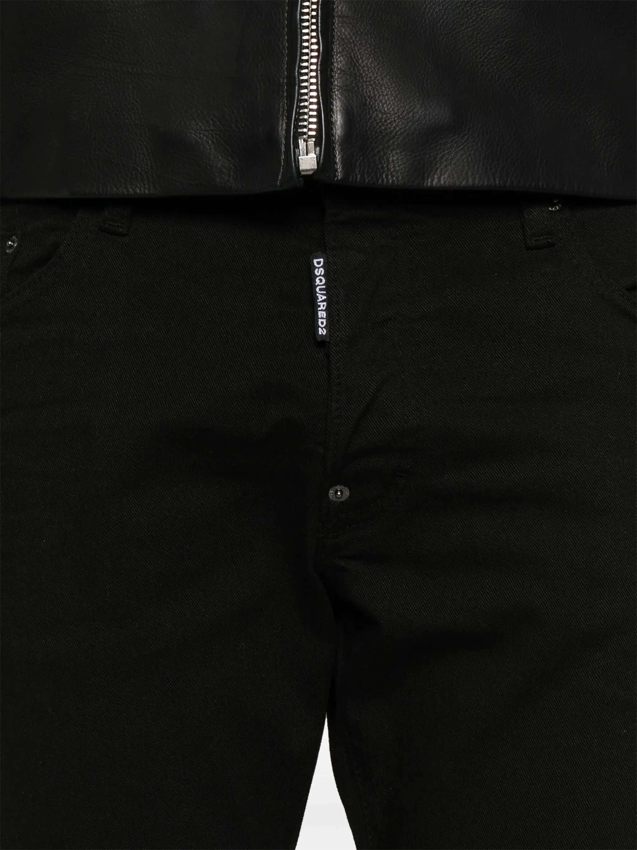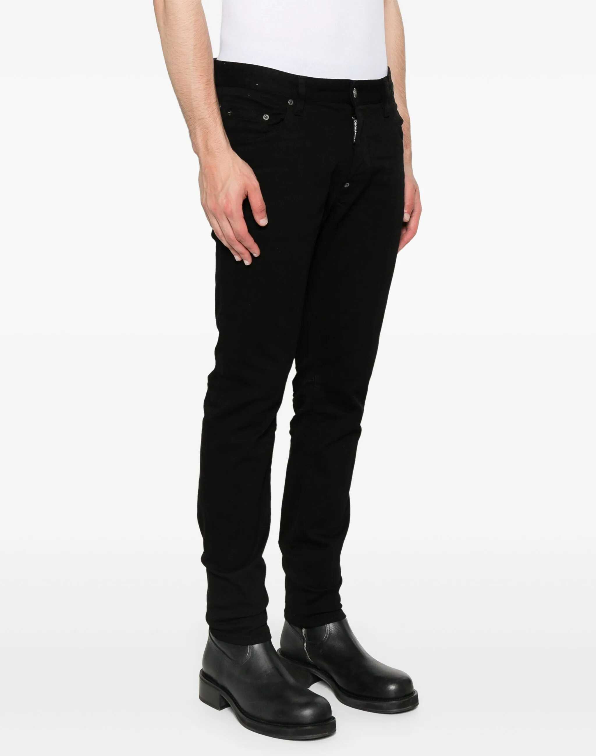 Cotton Skater jeans by Dsquared2 feature a classic five-pocket design and straight fit. The front closure is with buttons, while the waistband is finished with belt loops. On the back stands out the iconic leather patch with the brand's signature pressure print, a distinctive detail with unmistakable style.