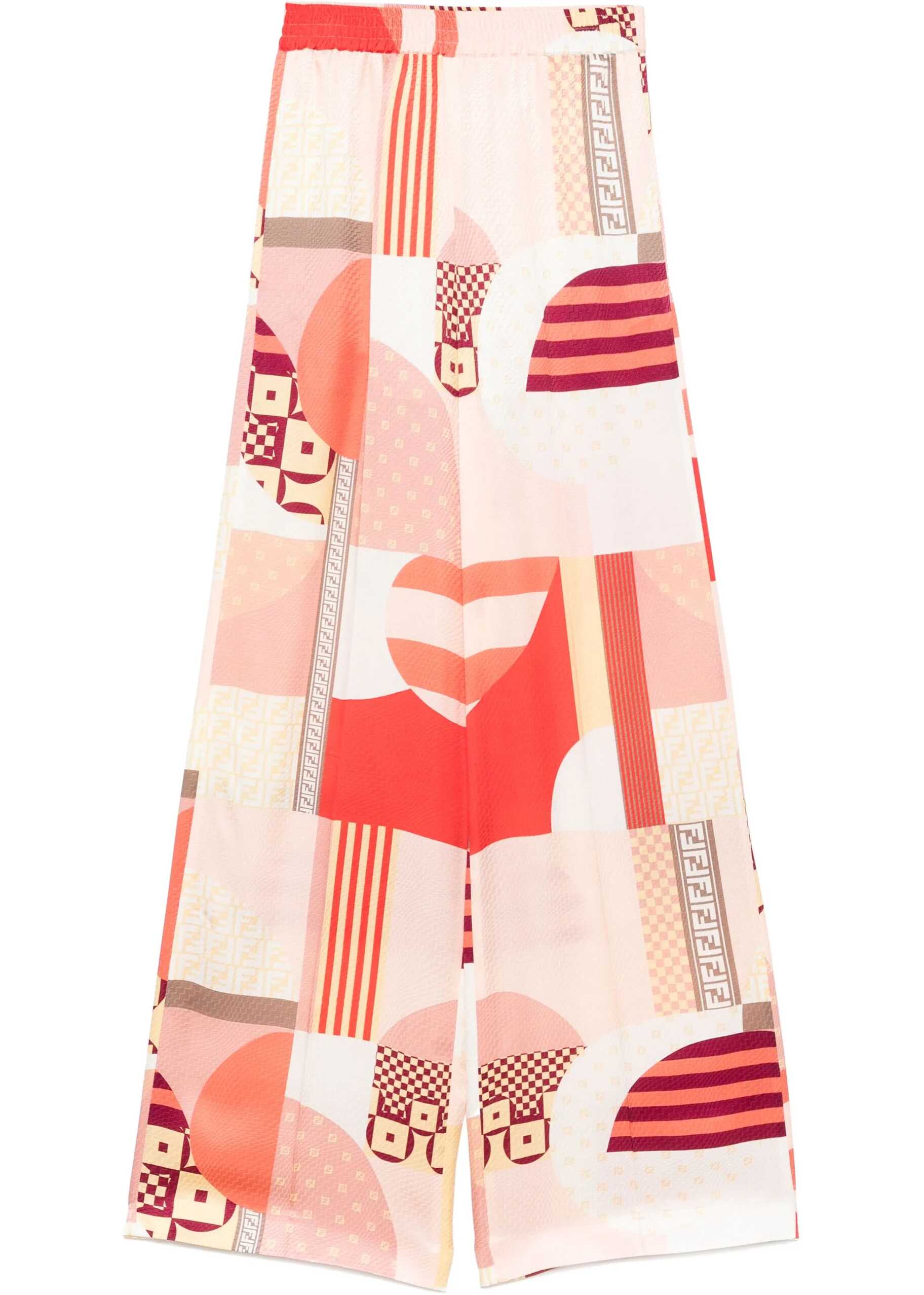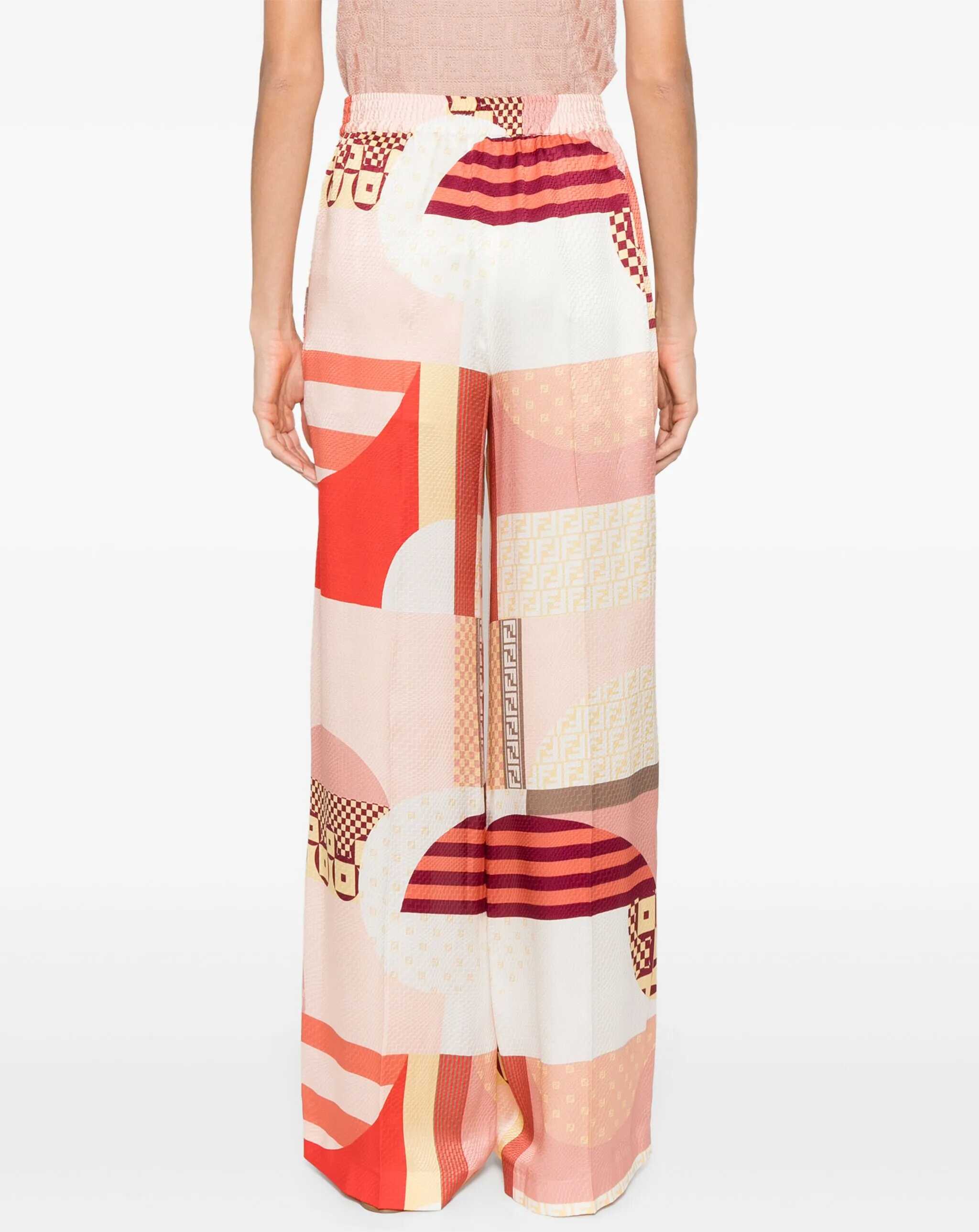 The all-over patchwork print silk crepe Pants by Fendi combine elegance and originality. The elasticated waist ensures comfort and a fluid fit, while the ironed center pleats add a tailored touch to the design. Practical in-seam pockets complete the pattern for a refined, contemporary style.