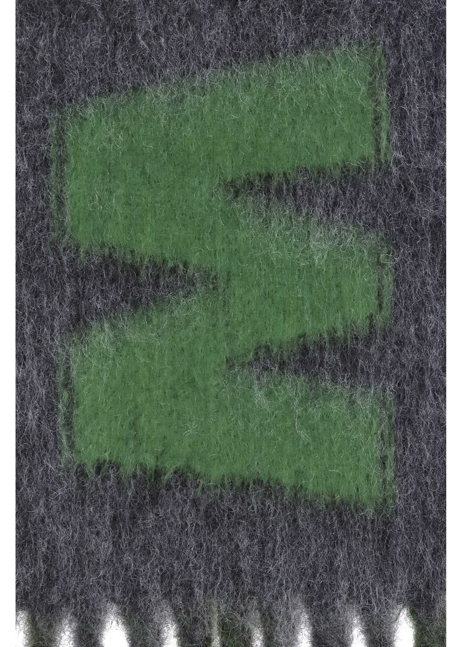 Marni's Scarf is a wrap-around accessory with character, made from a fine blend of alpaca and mohair that ensures warmth and softness. The design features a contrasting reverse and dégradé fringing, elements that add movement and originality. The Maxi Marni lettering gives a bold graphic touch, while the logo patch sewn on the outside signs the garment with the brand's unmistakable style. Perfect to complete the look with a bold and contemporary detail.