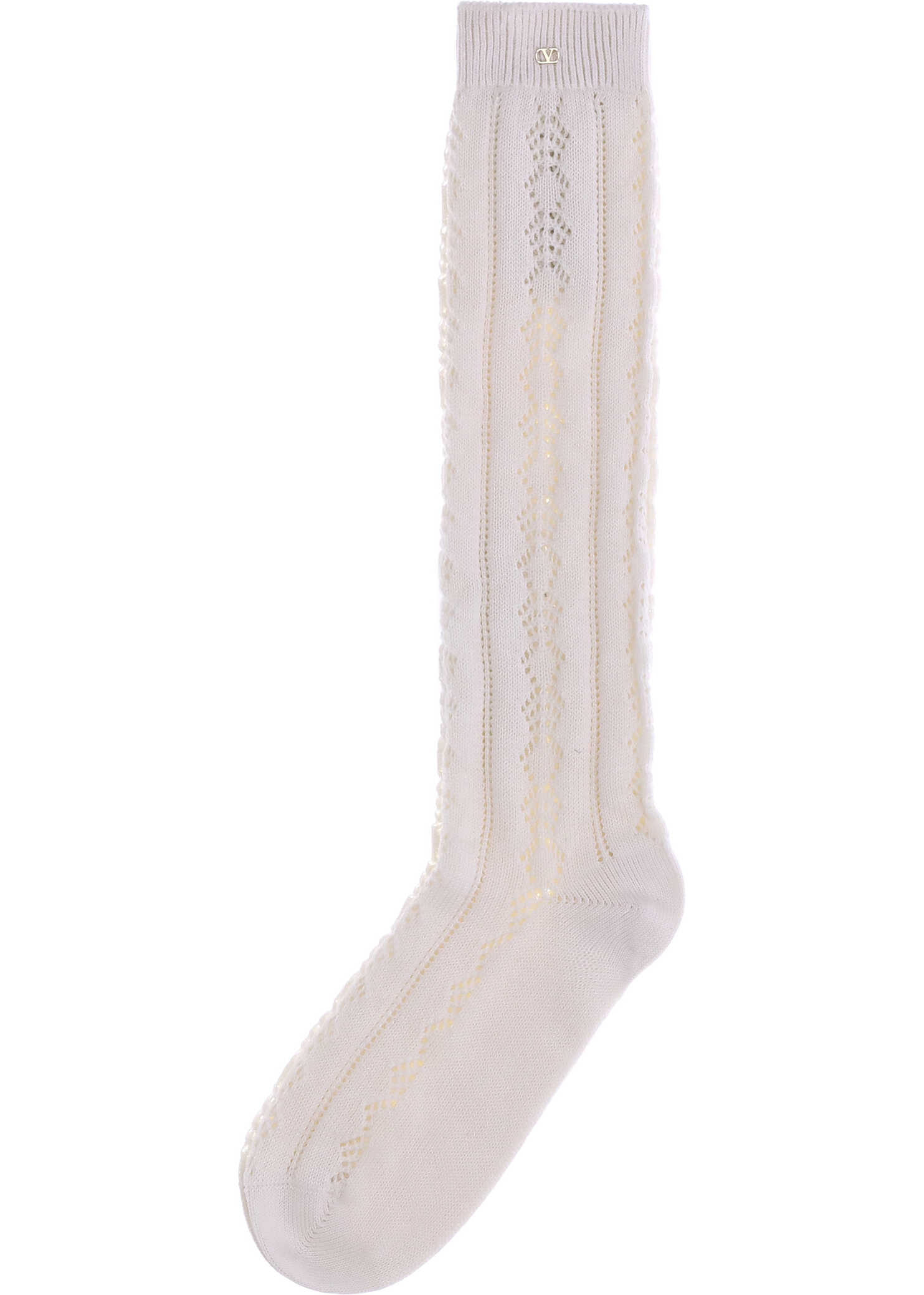 Valentino Garavani's cotton crochet Socks are an elegant and sophisticated accessory, made from soft cotton with a delicate crochet design. With a knee-length, these socks add a touch of femininity and sophistication, perfect for completing summer or spring outfits with a unique and classy detail.