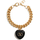 The Coeur Royal chain Bracelet by Valentino Garavani is a refined and romantic piece of jewelry made of gold-plated metal. Featuring a shiny black heart-shaped charm, it is embellished with the iconic Signature VLogo on the front and delicate openwork on the back. The swivel lobster clasp ensures practicality and security. An elegant accessory, perfect for adding a distinctive and feminine touch to any look.