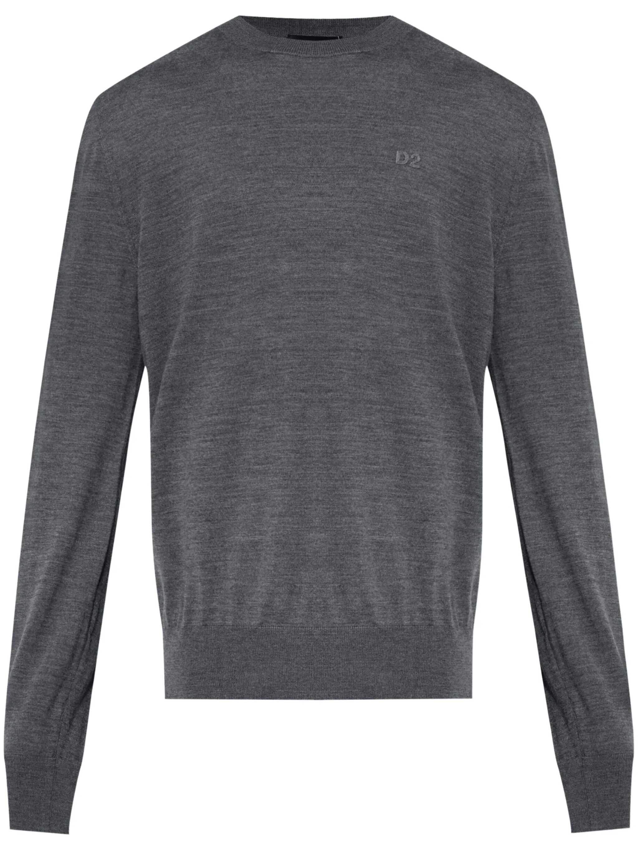 Grey virgin wool sweater by Dsquared2 with embroidered logo on the chest