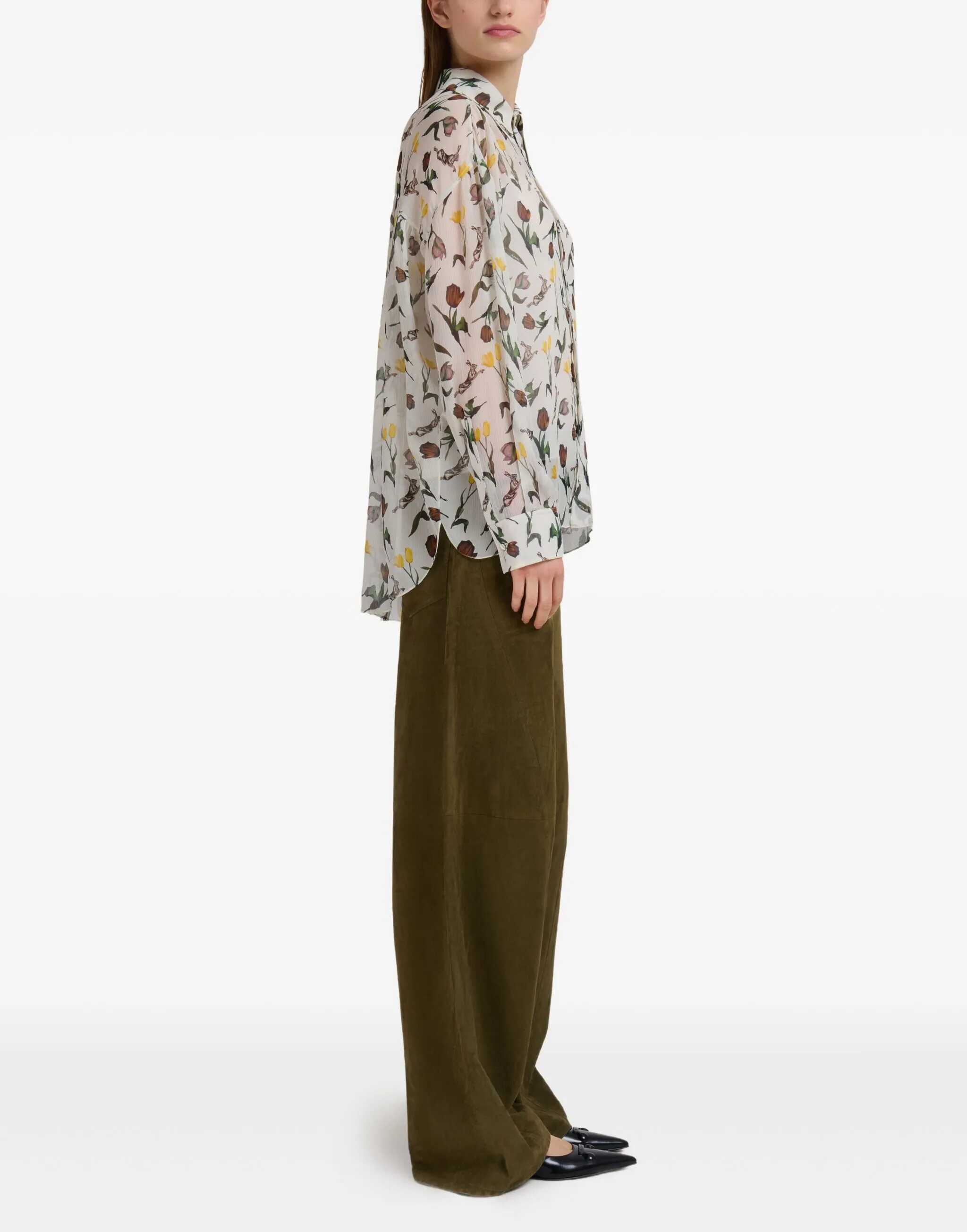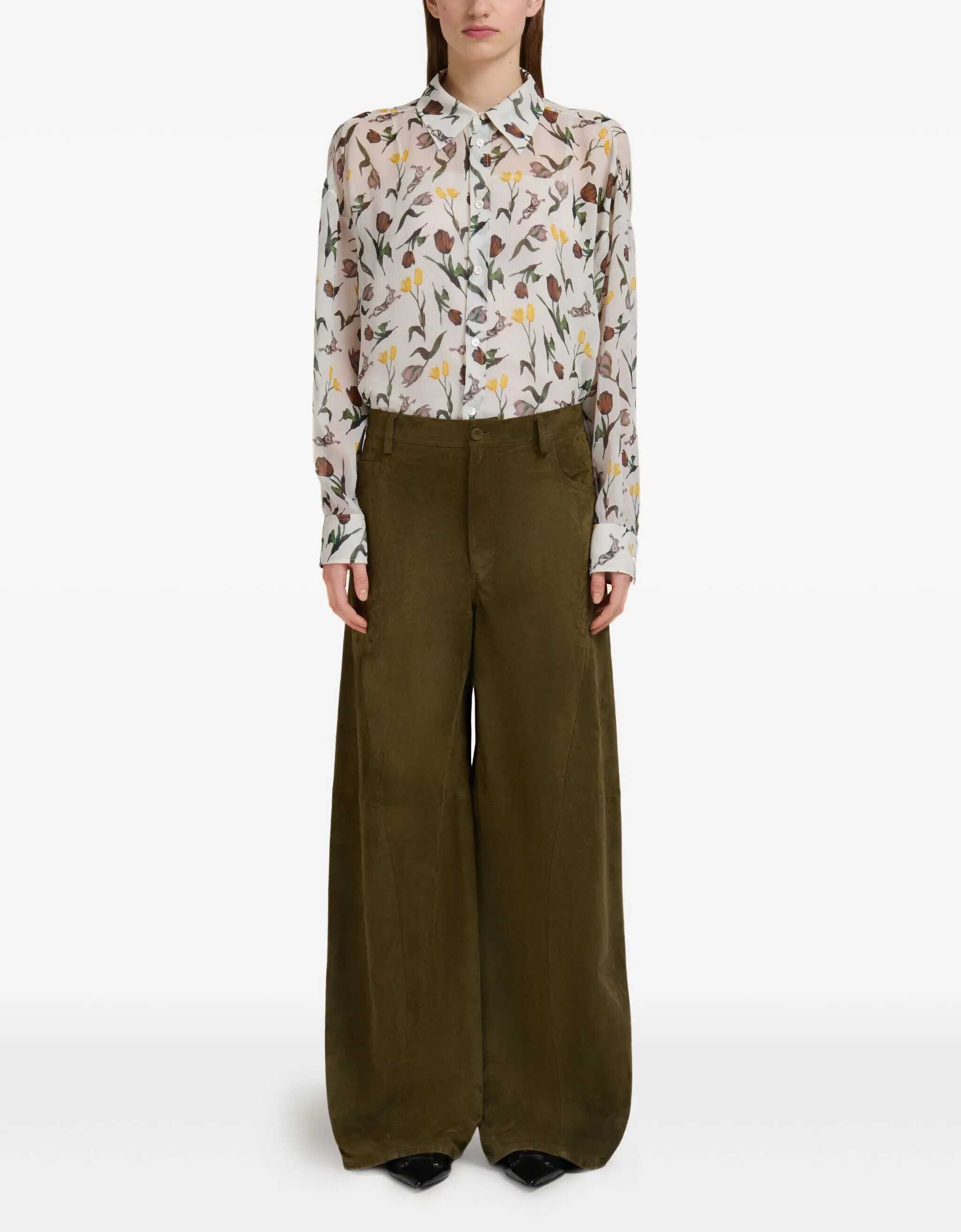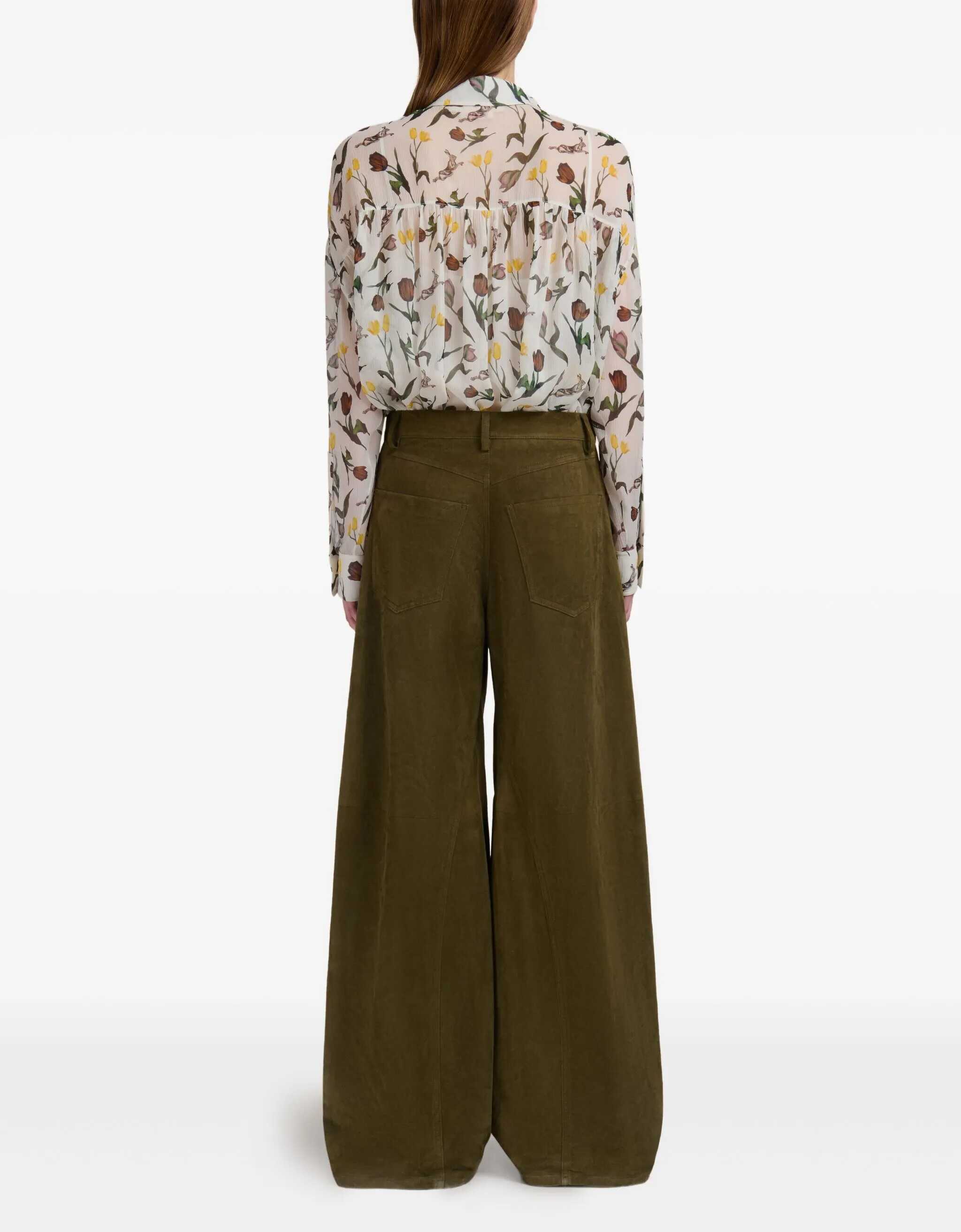 Pants by Marni made of soft suede leather have a contemporary design and a loose fit. The model features a front zipper and button closure, belt loops at the waist and a classic five-pocket construction. Completing the garment is a leather patch with Marni logo applied on the back, a distinctive detail of the brand. A statement piece, perfect for elevating any look with a bold and refined touch.
