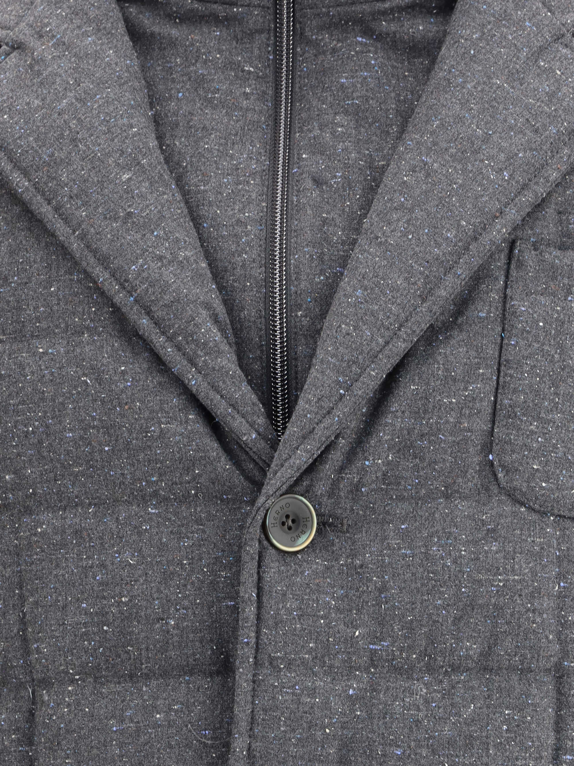 Herno's Down Jacket with a design inspired by the classic blazer, made of wool with a mélange pattern. The model features classic lapels, front button closure and a removable zippered inner part that offers added protection and versatility. Applied welt pockets on the front, quilted design and warm but lightweight padding complete the garment. A perfect blend of sartorial elegance and outdoor functionality.