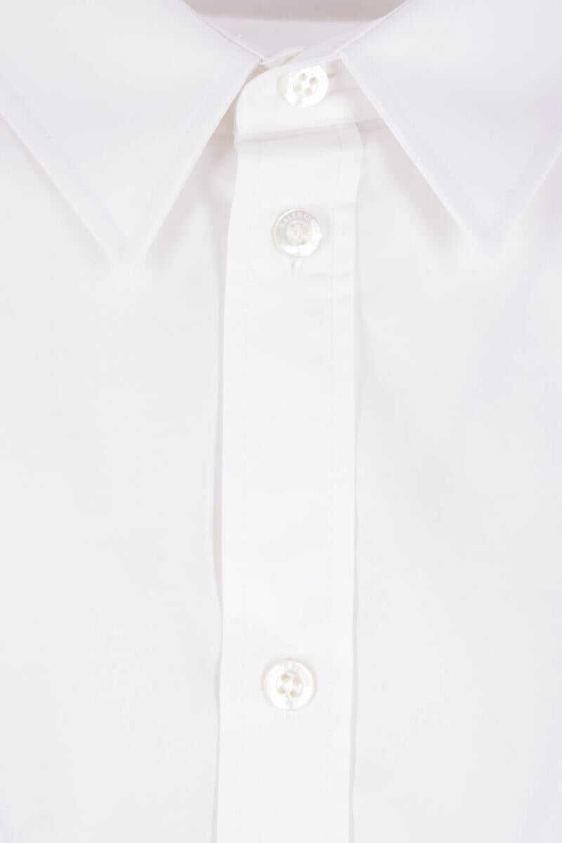 Balenciaga shirt crafted from white cotton poplin, featuring a double-layer construction with a fitted front and a looser back. Designed with a classic collar, front button closure, oversized long sleeves with buttoned cuffs, and a rounded hem.