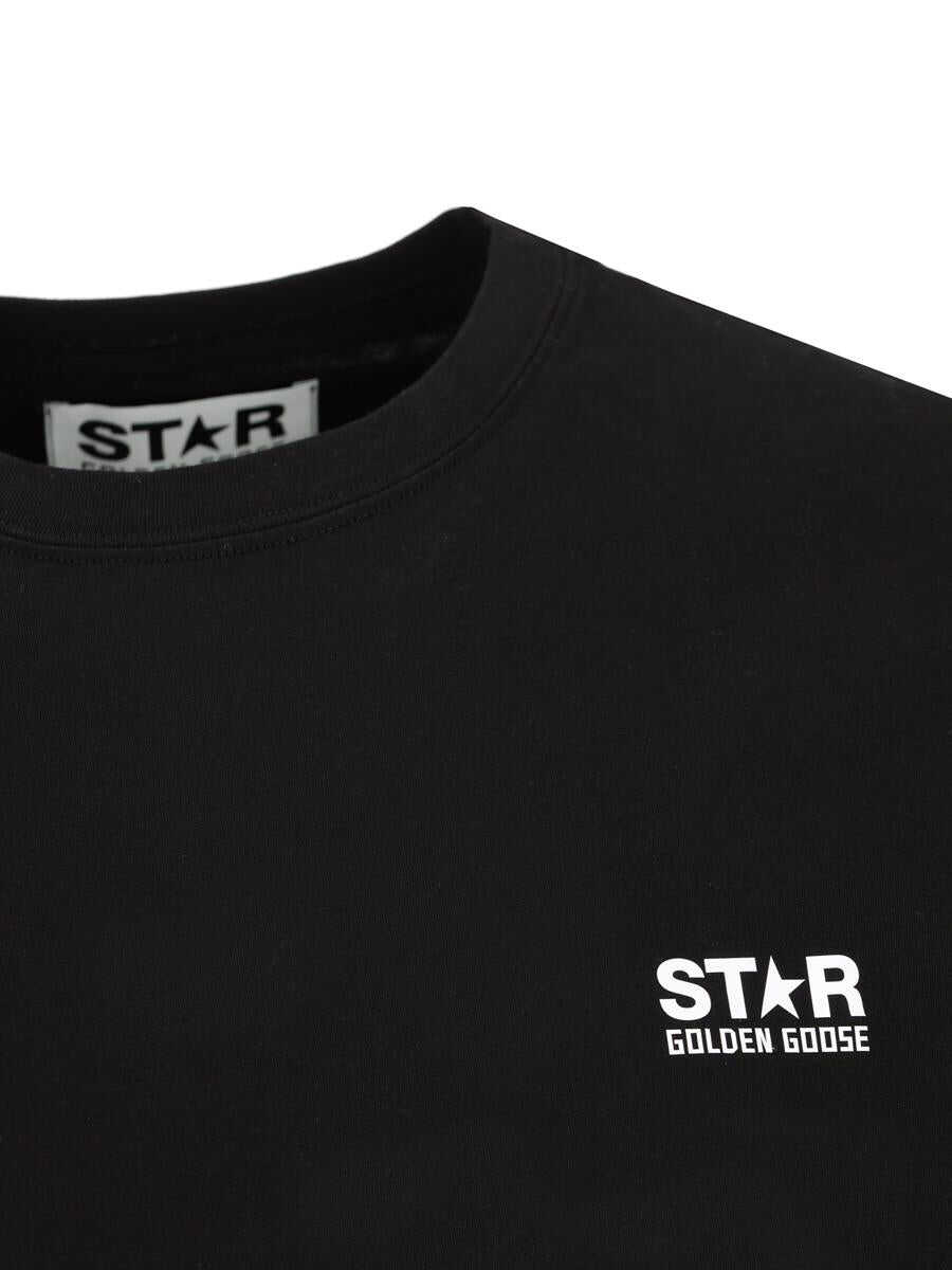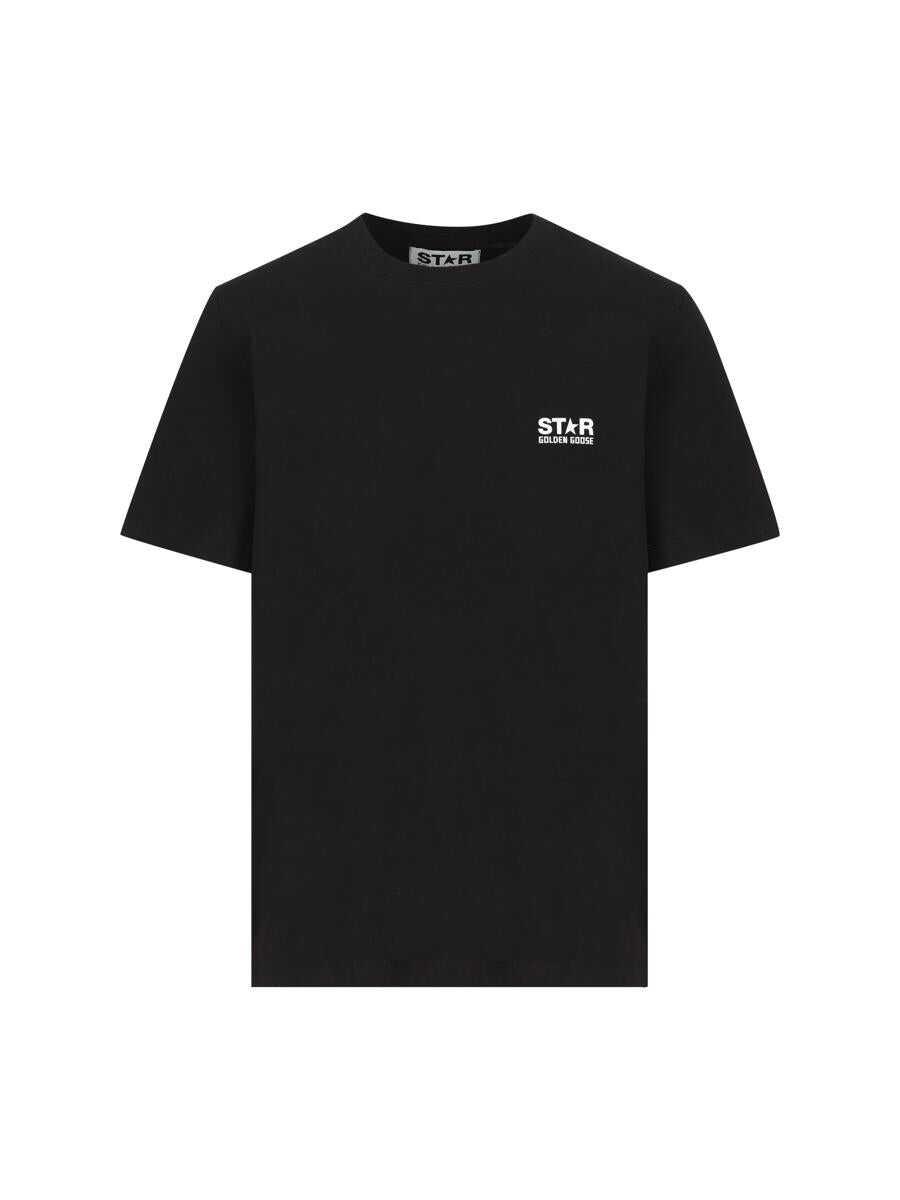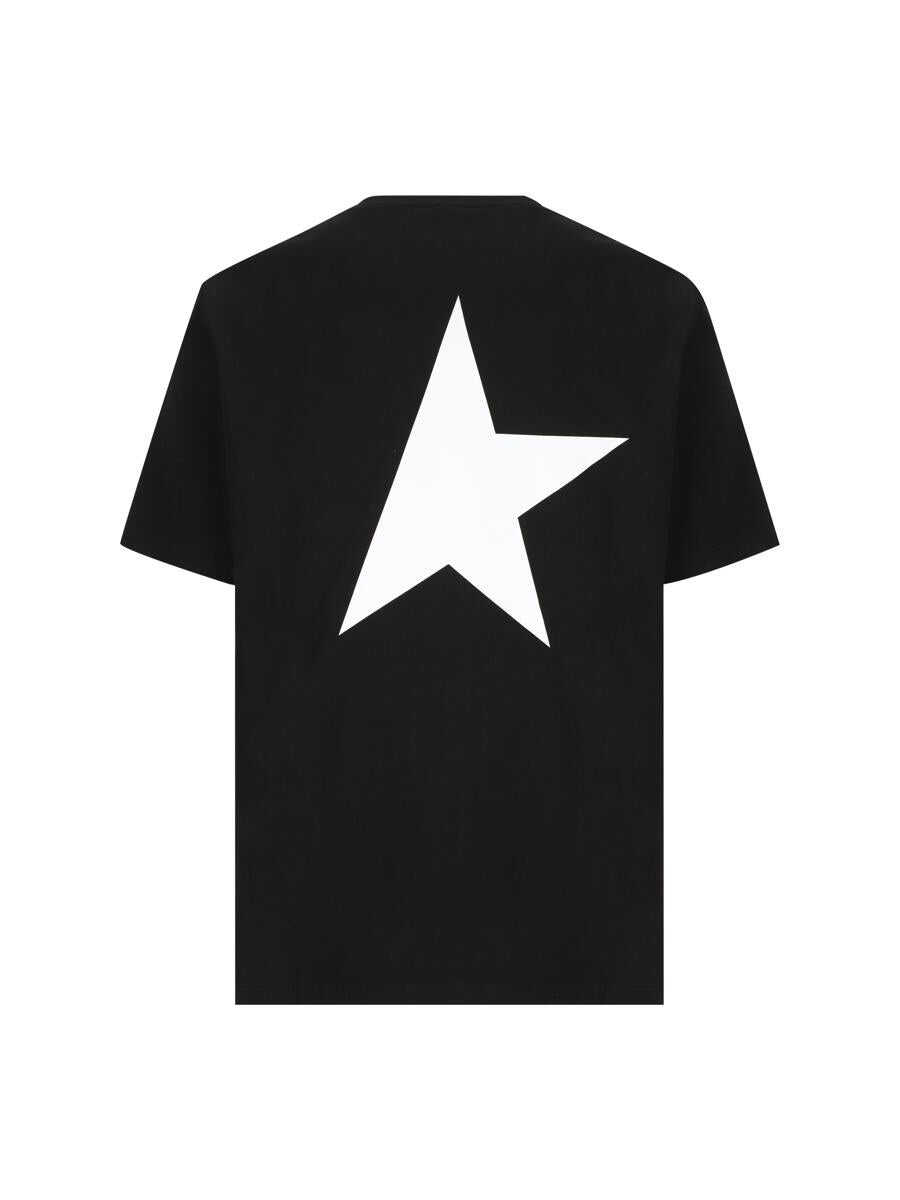 Minimal and iconic, the T-shirt from Golden Goose's Star collection combines a clean aesthetic with bold graphic details. The contrasting logo and star emerge on the white background with distinctive character for an essential yet instantly recognizable look. - Material: 100% cotton - Color: black - Crew neck - Contrasting logo on front - Maxi star on back - Short sleeves - Made in Italy - Item code: GMP01220P00087980203