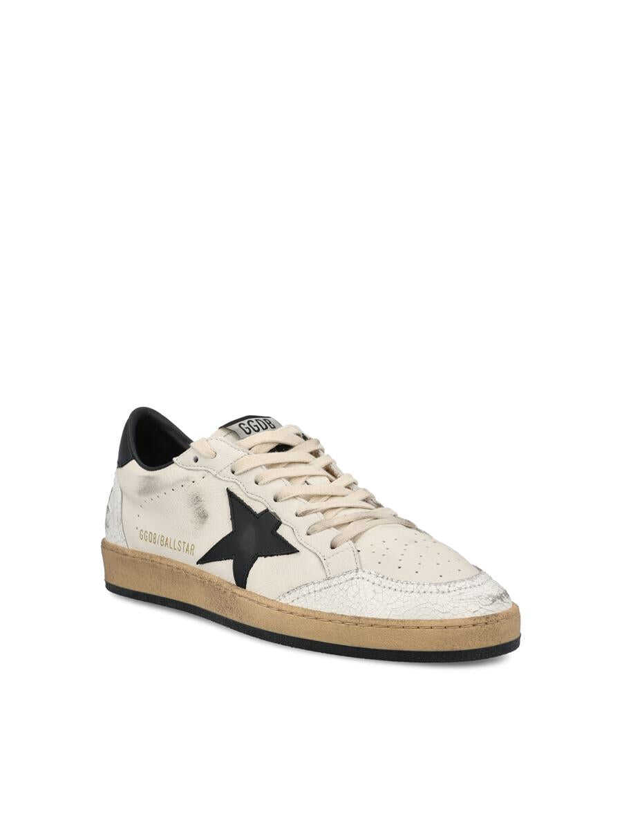 Golden Goose's Ball Star sneakers fuse American sports heritage with the Venetian brand's handcrafted aesthetic. The design inspired by vintage basketball shoes is revamped with leather details and used-effect processing for an authentic, urban, timeless style. - Upper: 100% sheep leather - Color: white/black - Rubber sole - Leather side star and heel - Cotton lace-up closure - Made in Italy - Box included - Item code: GMF00117F00377110283