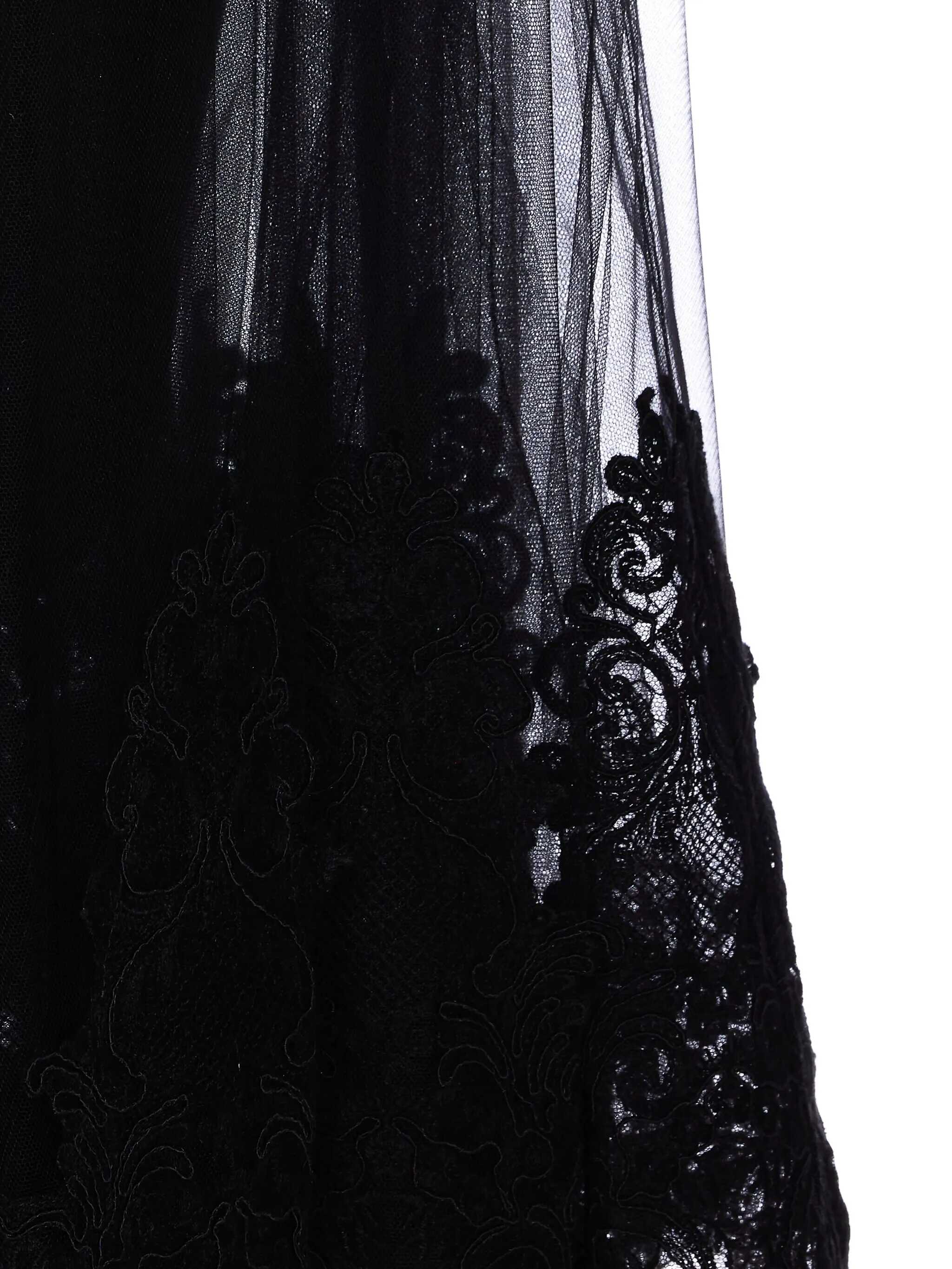 Elisabetta Franchi Black Skirt, Zip And Hook Closure On The Back, High Waist, Coulotte Detail, Transparent Detail, Embroidered, EU (IT) SIZE CHART