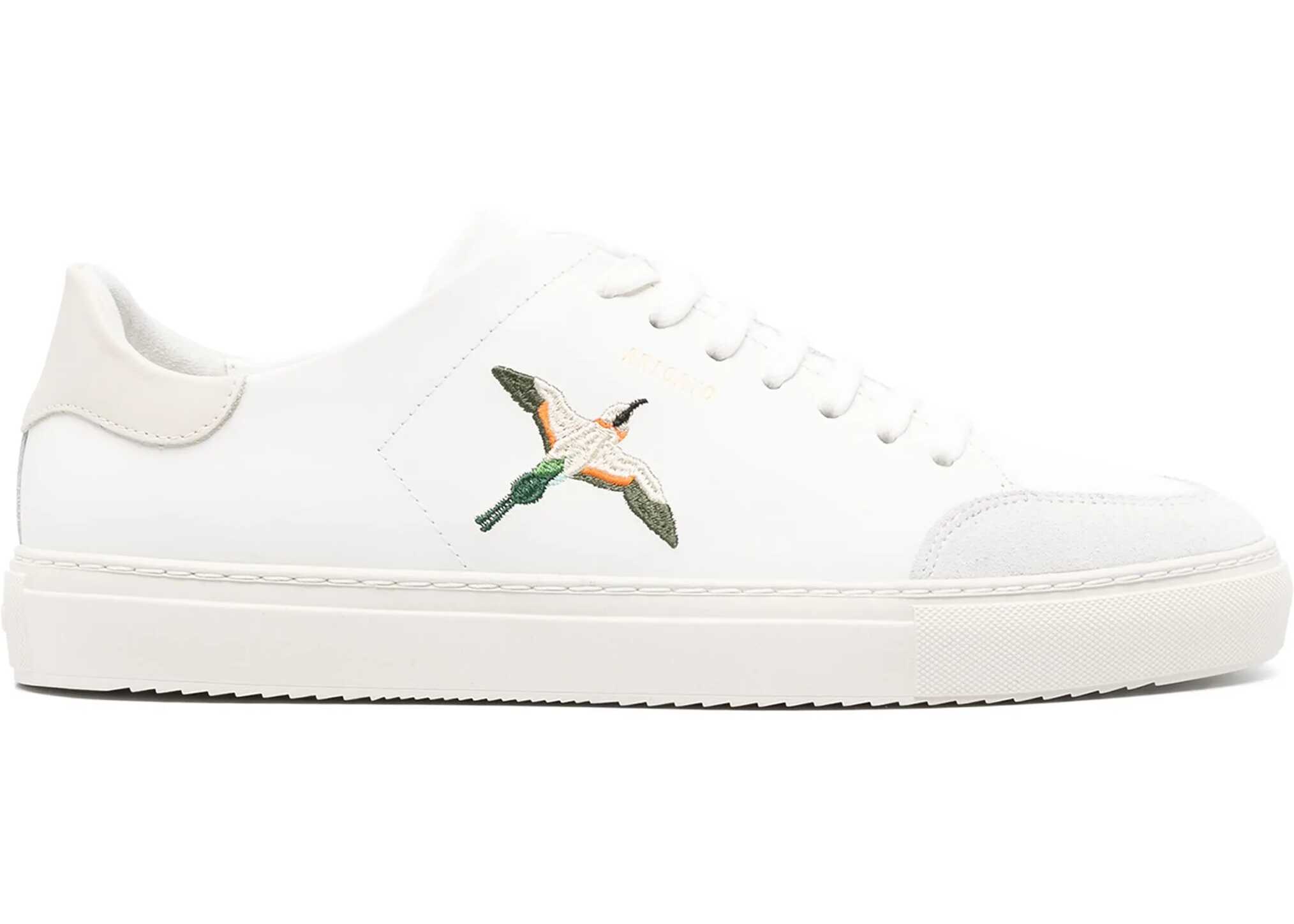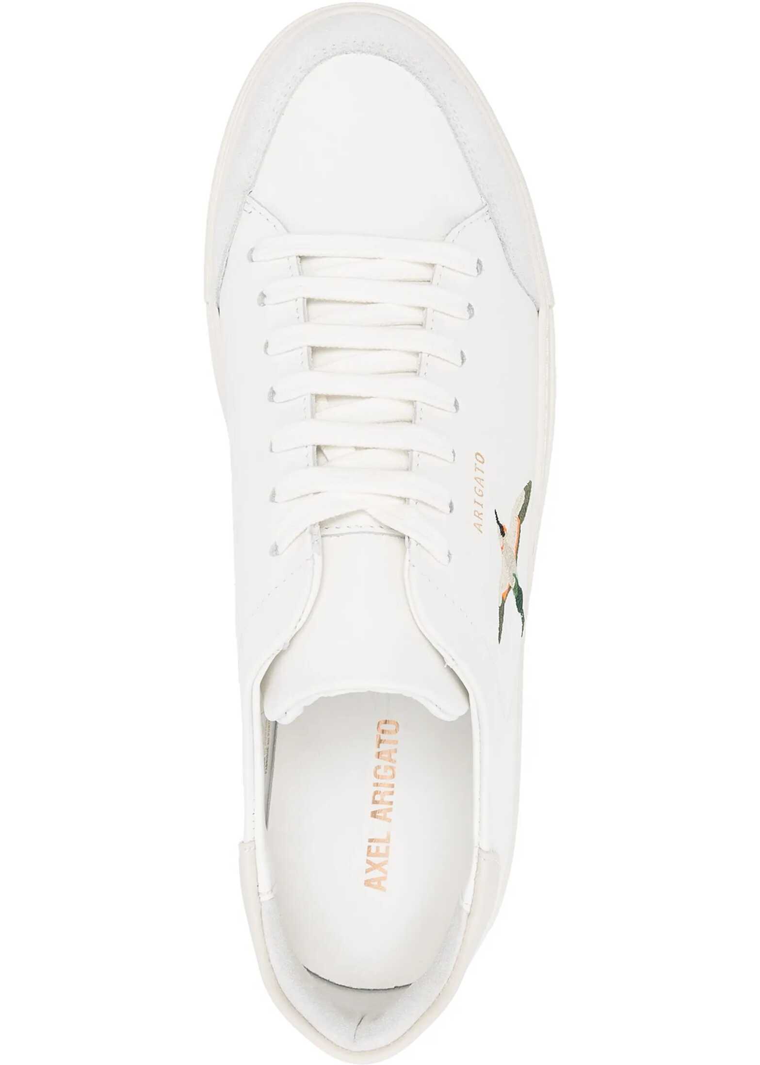 Axel Arigato's Clean 90 Bee Bird Sneakers feature a flat sole and front lace-up closure. The iconic Ape Bird is embroidered on the side, underscoring the brand's identity. Made of LWG-certified leather and lined internally with microfiber and recycled polyester, they ensure comfort and sustainability. The model is complemented by cupsole rubber soles that are partially recycled for durability.