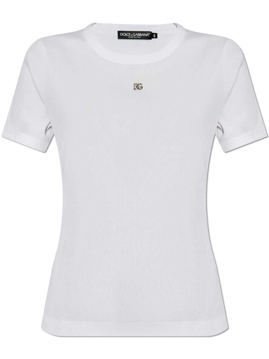 Pure white cotton Dolce & Gabbana T-shirt with ribbed round neckline and straight cut. Distinctive detail: applied logo plaque. An essential garment with a clean design, perfect for a refined and contemporary style. Discover it now.