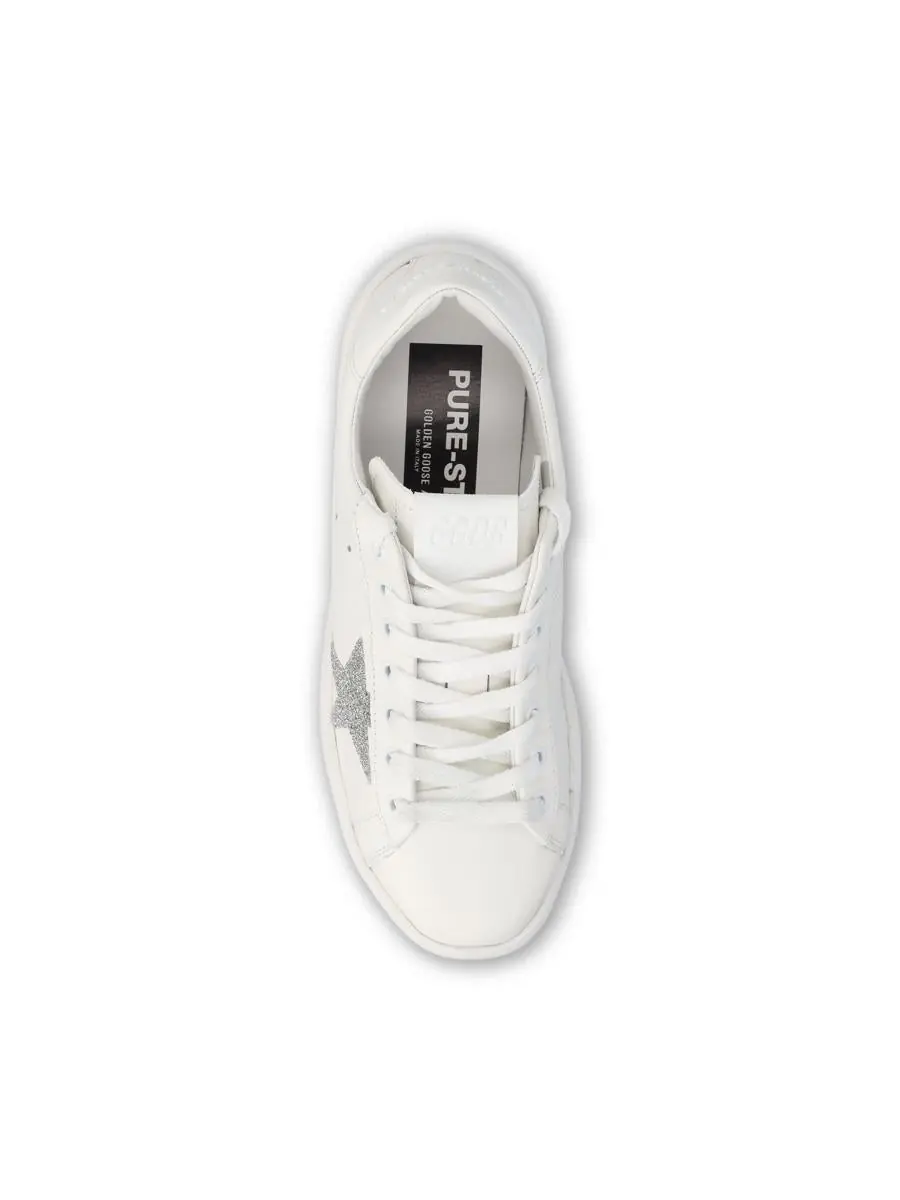 Refined and luminous, Golden Goose's Purestar sneakers with Swarovski crystal star combine sporty minimalism and jeweled details. Made of white leather, they represent the meeting of everyday comfort and understated glamour. - Upper: 96% cowhide, 4% crystals - Color: white - Lining: 86% cowhide, 14% cotton - Sole: 100% rubber - White leather heel - White laces - Silver Swarovski crystal star - Made in Italy - Box included - Item code: GWF00197F00278980185