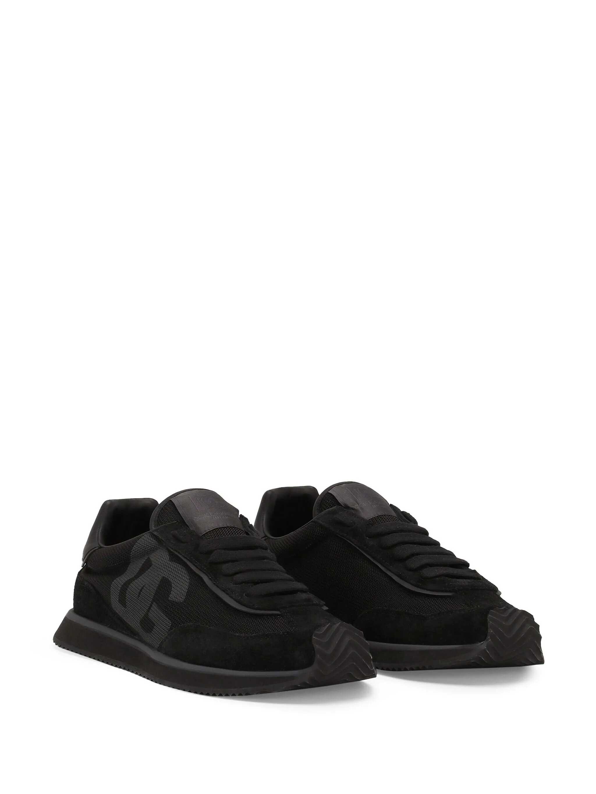Black Aria sneakers from Dolce & Gabbana featuring round toe, suede details, laces fastening, logo and rubber sole.
