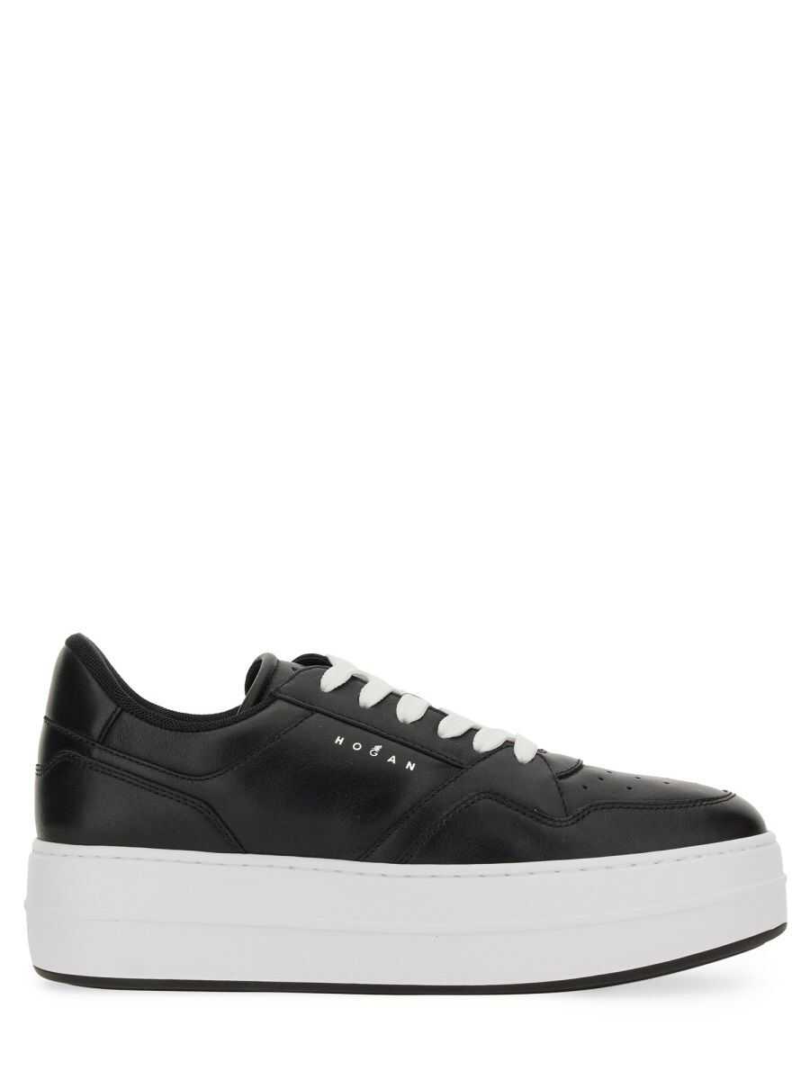Hogan Black Skyscraper Sneakers, Round Toe, Lateral Mini Logo, Platform Model, Leather Upper, Platform 5 cm