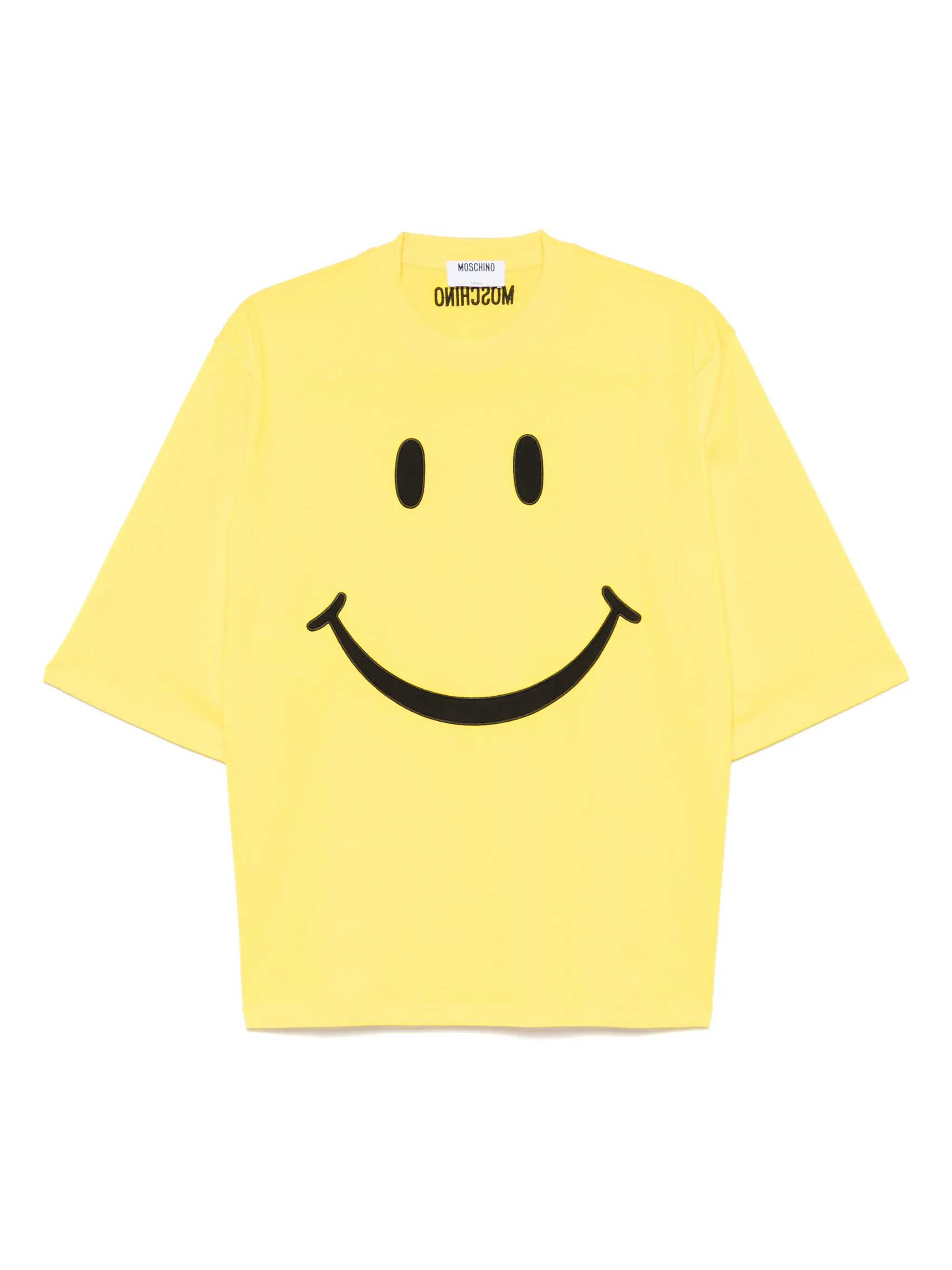 'Smiley' organic cotton crew neck t-shirt with front patch, short sleeves.