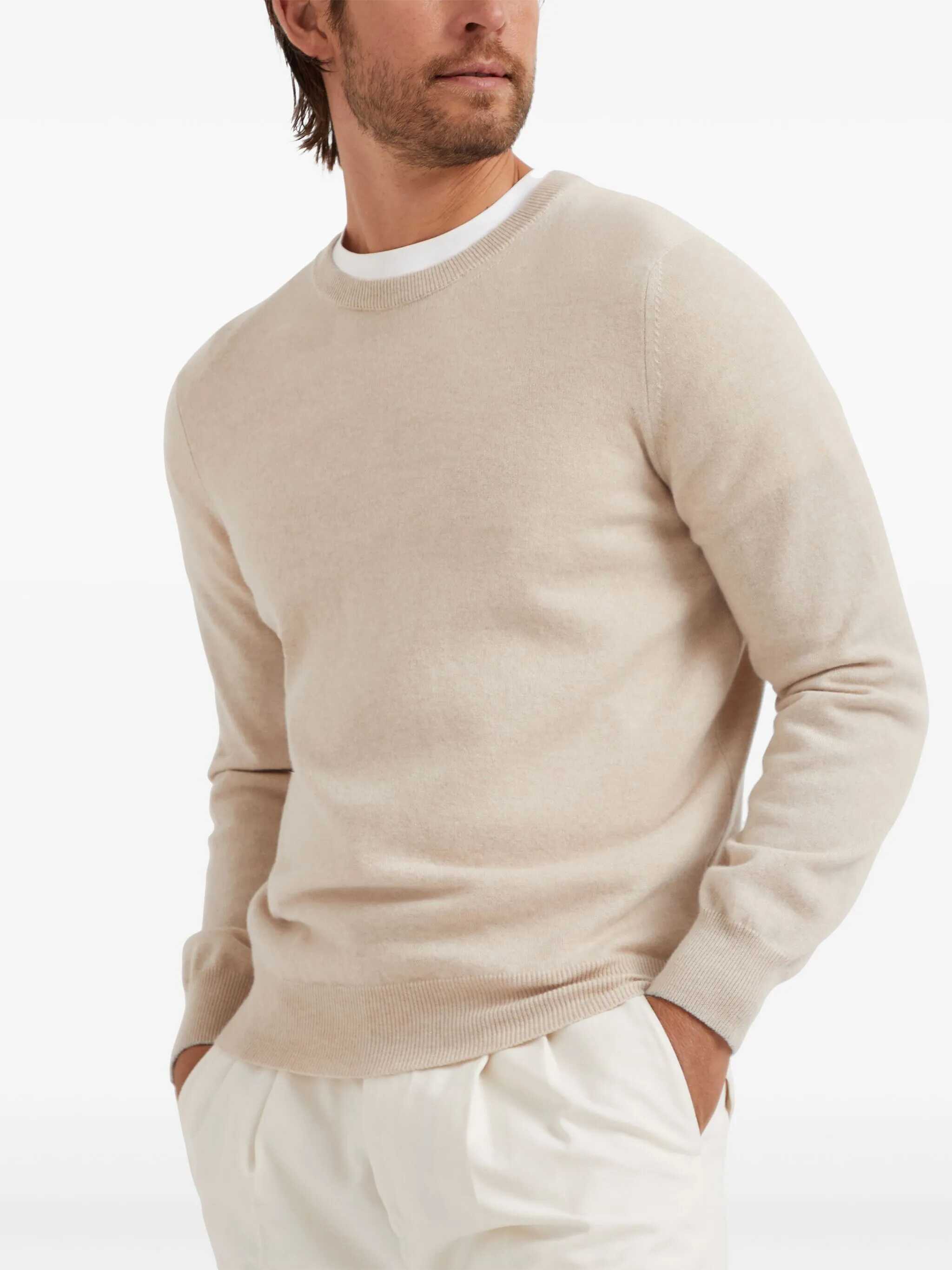 Brunello Cucinelli's cashmere Sweater combines luxury and simplicity in a men's wardrobe essential. Featuring a monochrome pattern, it has a refined ribbed crew neck, as well as ribbed cuffs and hem, ensuring a comfortable fit and clean lines. Made from the highest quality yarn, it is perfect for adding a touch of understated elegance to any look, whether casual or more formal.