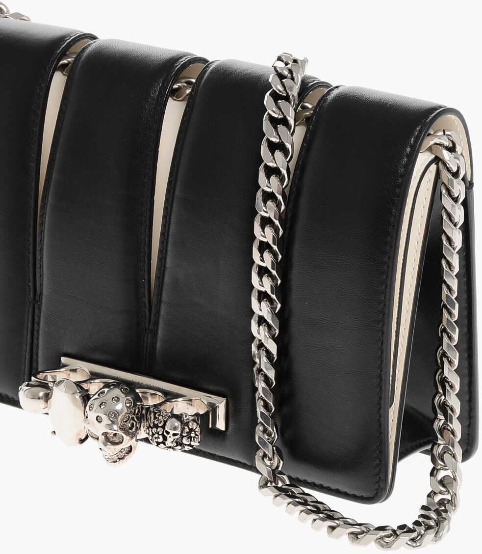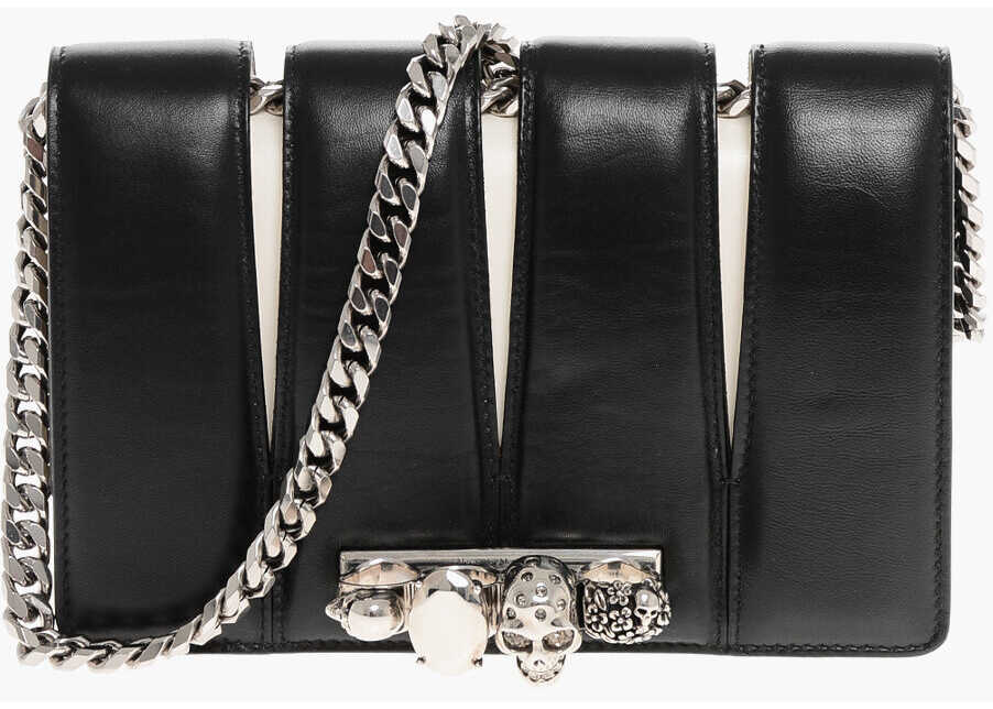 Two-Tone Leather Slash Clutch With Jewel Detail