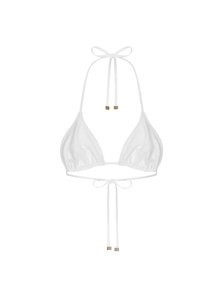 Optical white stretch-design triangle cup rear tie fastening adjustable fit be mindful to try on swimwear over your own garments.