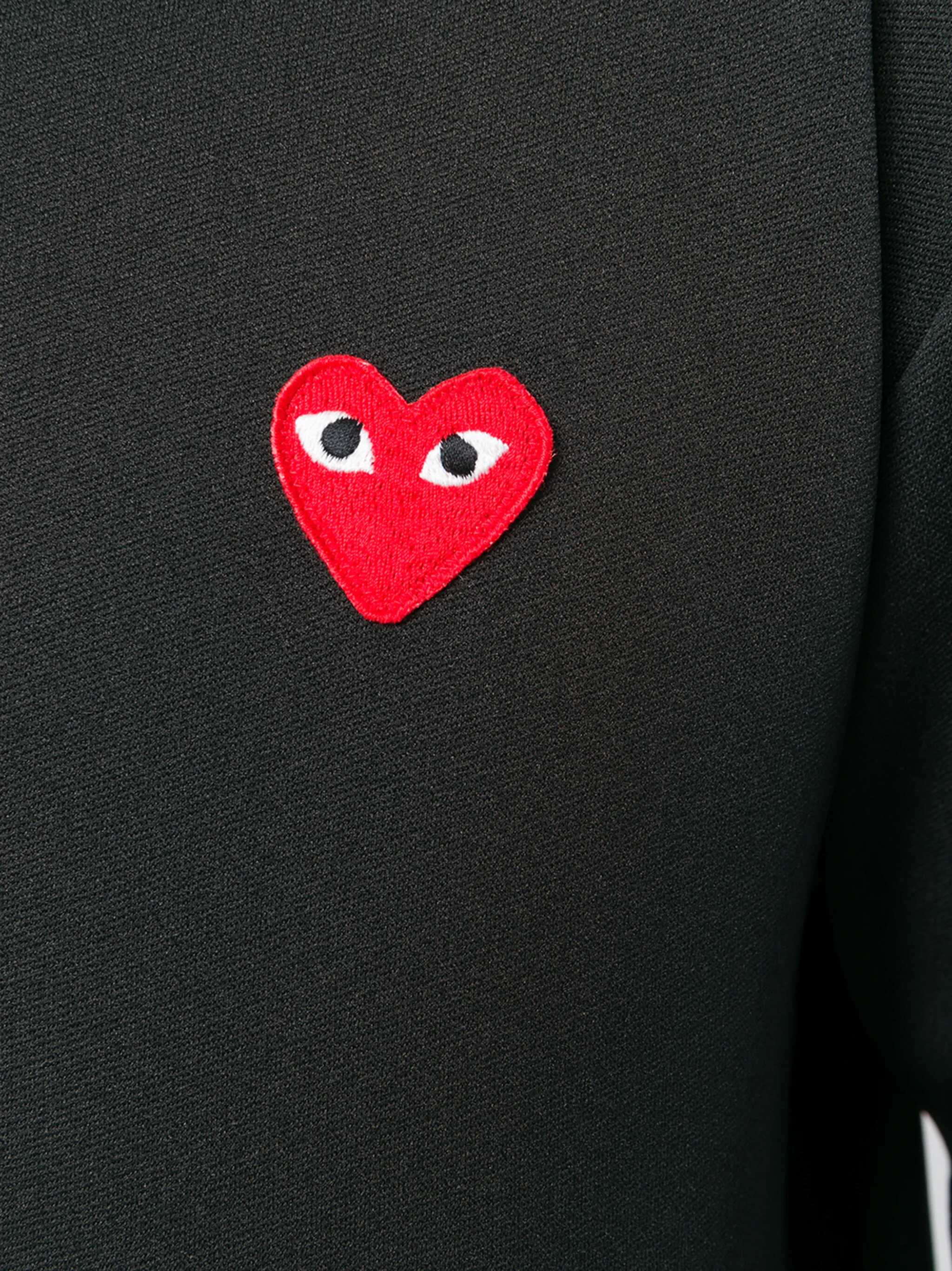 The Comme Des Garçons Play Hoodie is a casual and versatile piece perfect for adding a touch of style to your wardrobe. The adjustable drawstring hood offers comfort and practicality, while the front zipper closure allows for an easily adjustable fit. The two front welt pockets are ideal for storing small items or simply keeping your hands warm. The iconic heart logo stitched on the front is the brand's trademark, adding a distinctive and playful touch.