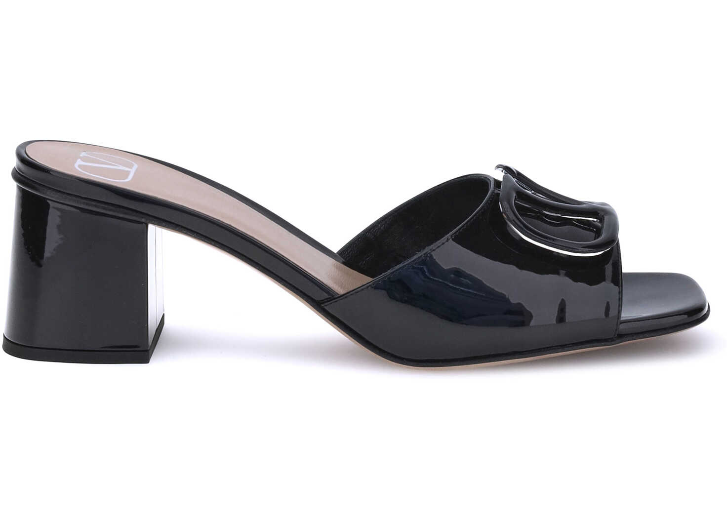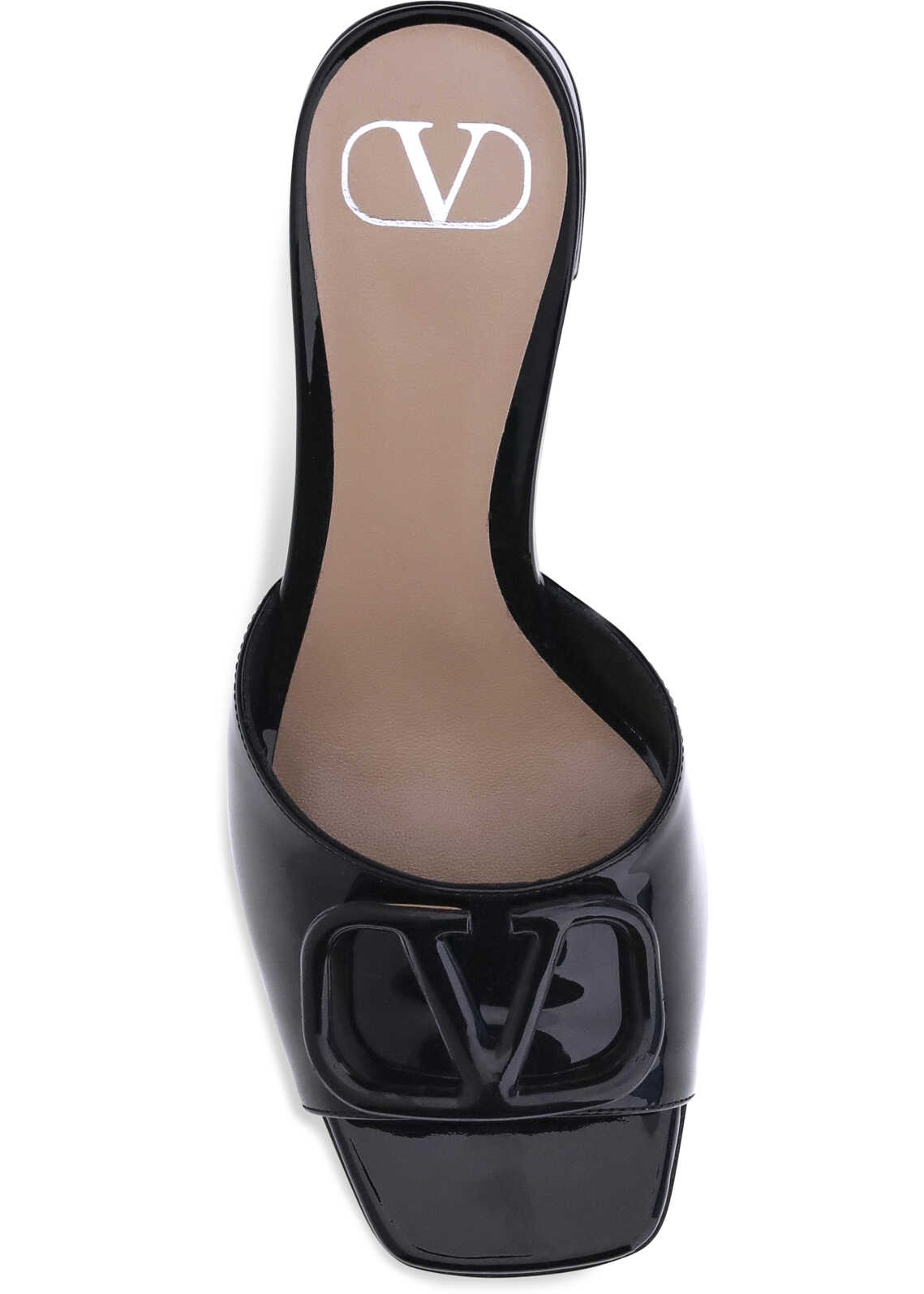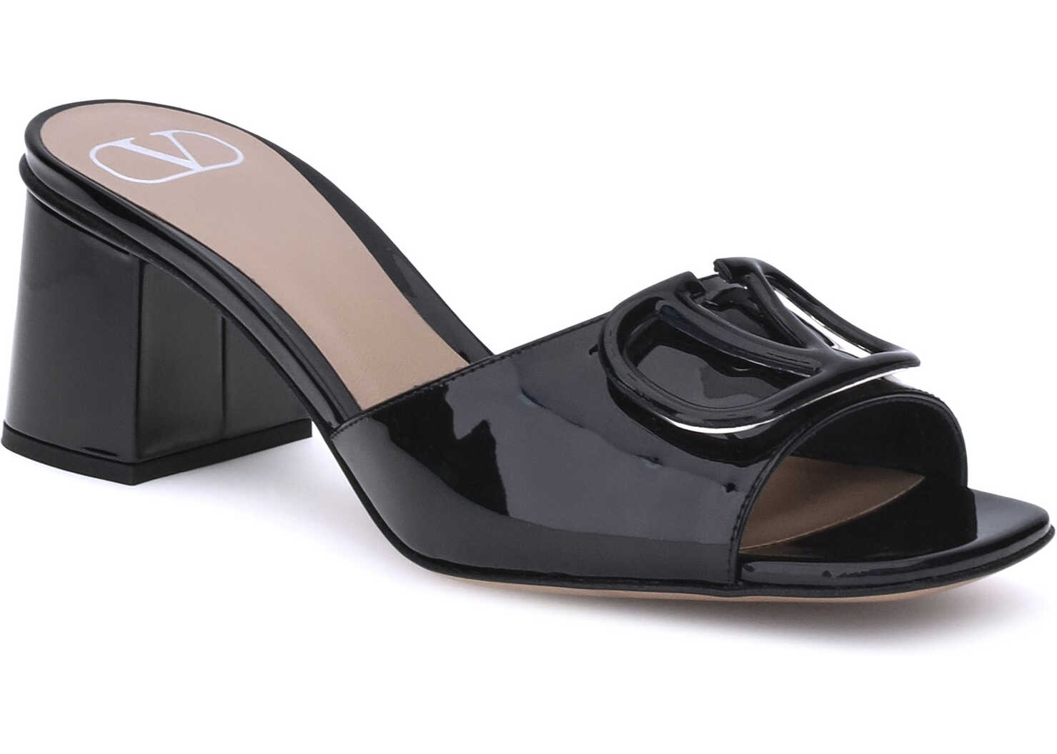 Valentino Garavani's slide Sandals are an elegant fusion of minimalism and brand identity. Made of glossy patent leather, they are decorated with the iconic Signature VLogo accessory, also covered in patent leather thanks to a refined high-frequency processing. The design is completed by a wide leather-bound heel and an essential yet distinctive silhouette.