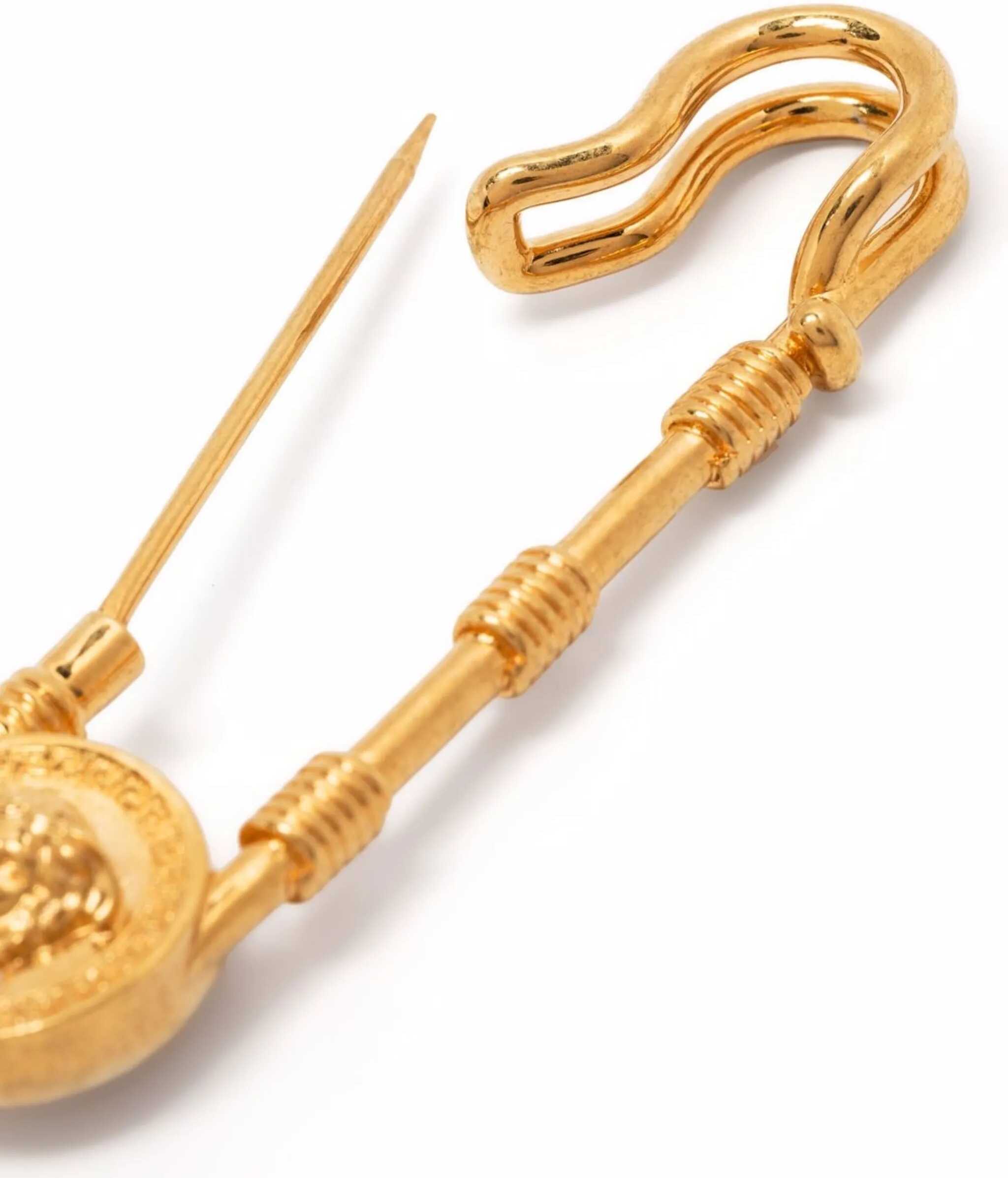 Versace's Medusa Brooch is an iconic accessory with a bold and sophisticated style. Featuring the Medusa head motif and the unmistakable Greca details, it stands out for its shiny gold finish that enhances its elegance. A distinctive touch to enhance any look.