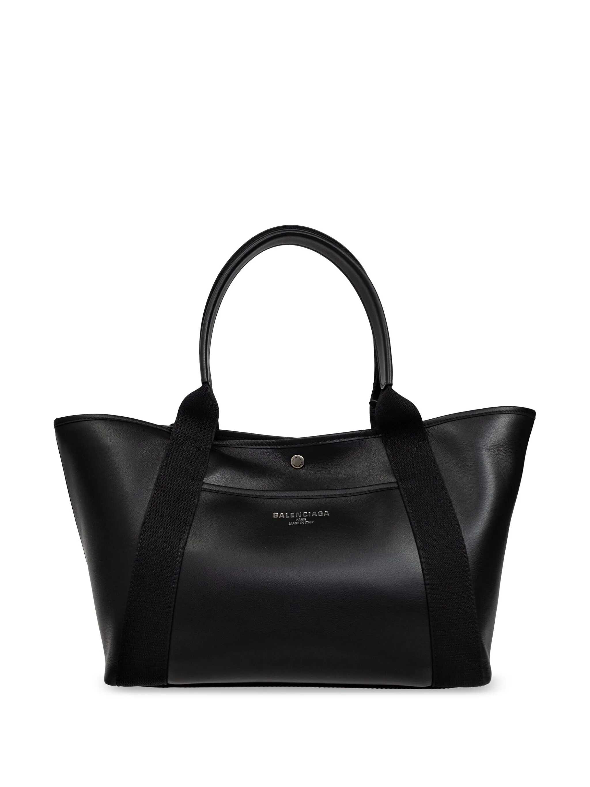 Black leather medium Biarritz shopping bag Width: 29 cm Height: 23 cm Depth: 19 cm Handle height: 16 cm