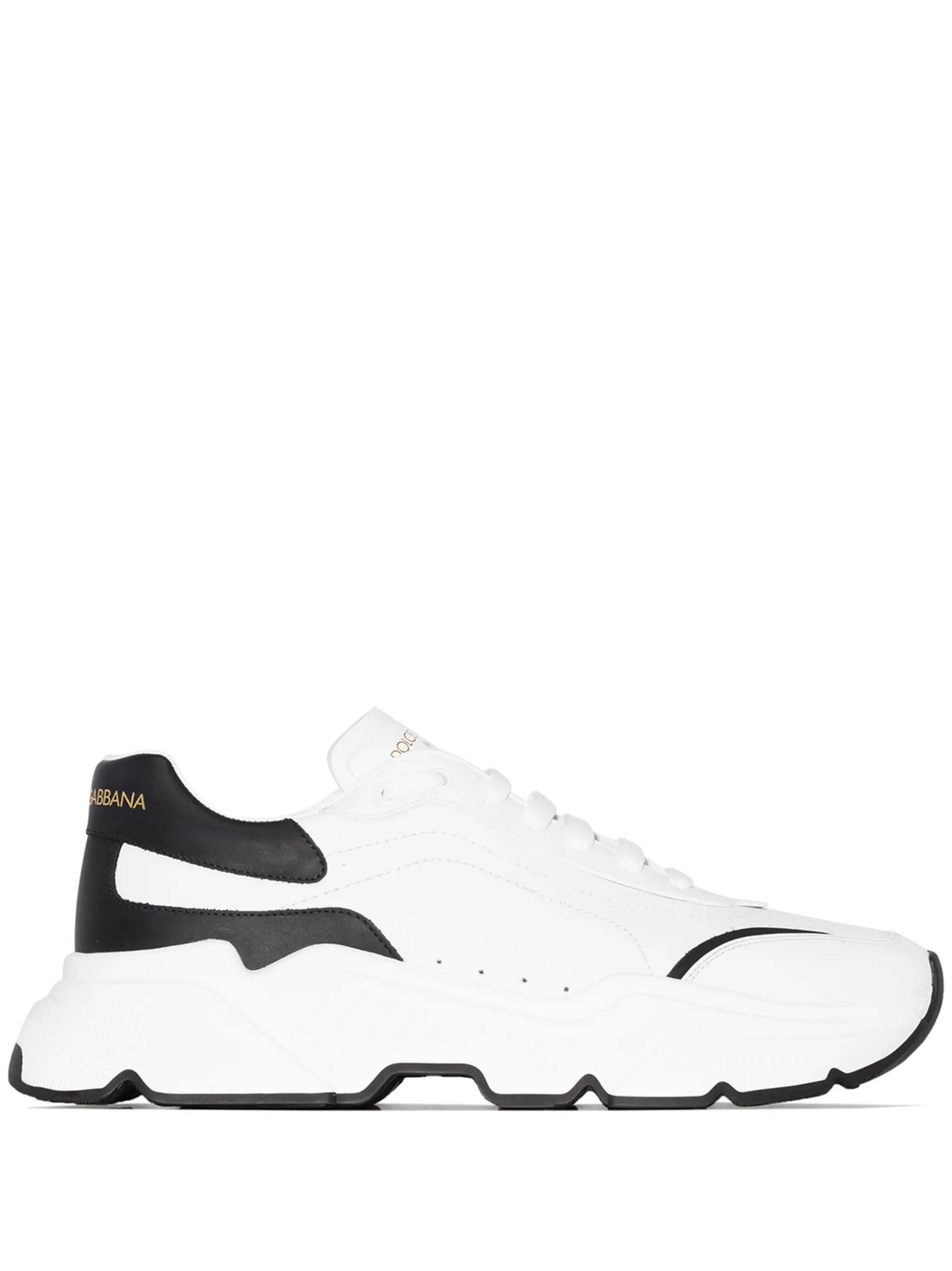 Dolce&Gabbana leather sneakers with contrast logo spoiler, oversize sole and logo print on the tongue