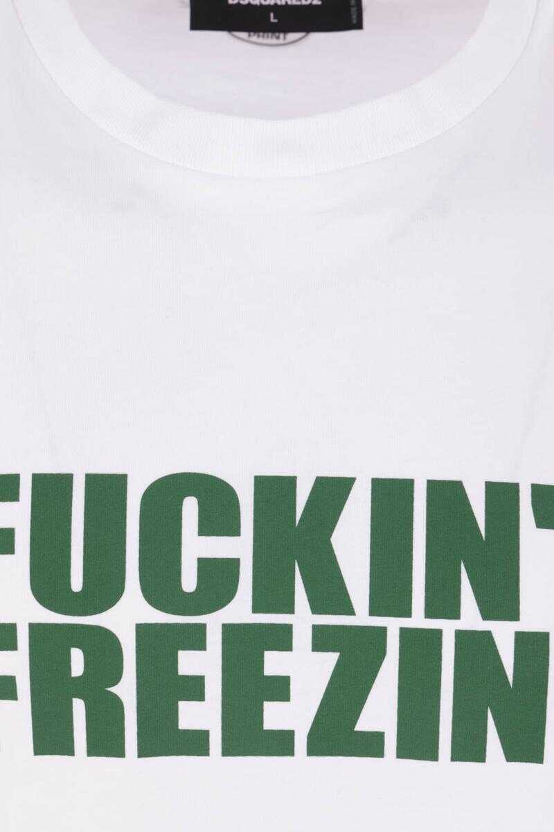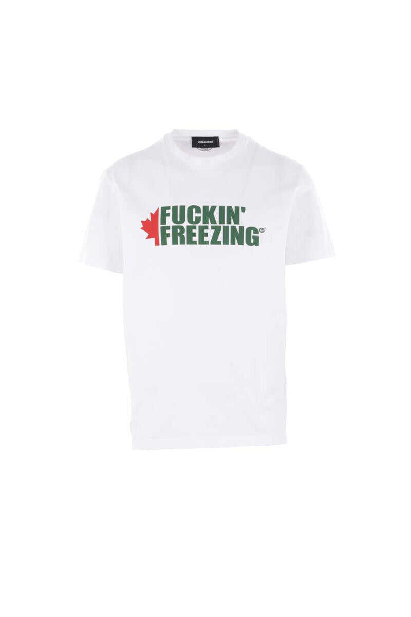 Dsquared2 t-shirt crafted from white cotton jersey with a "Fuckin' Freezing" print on the front. Featuring a crew neckline, short sleeves, and a straight hem.