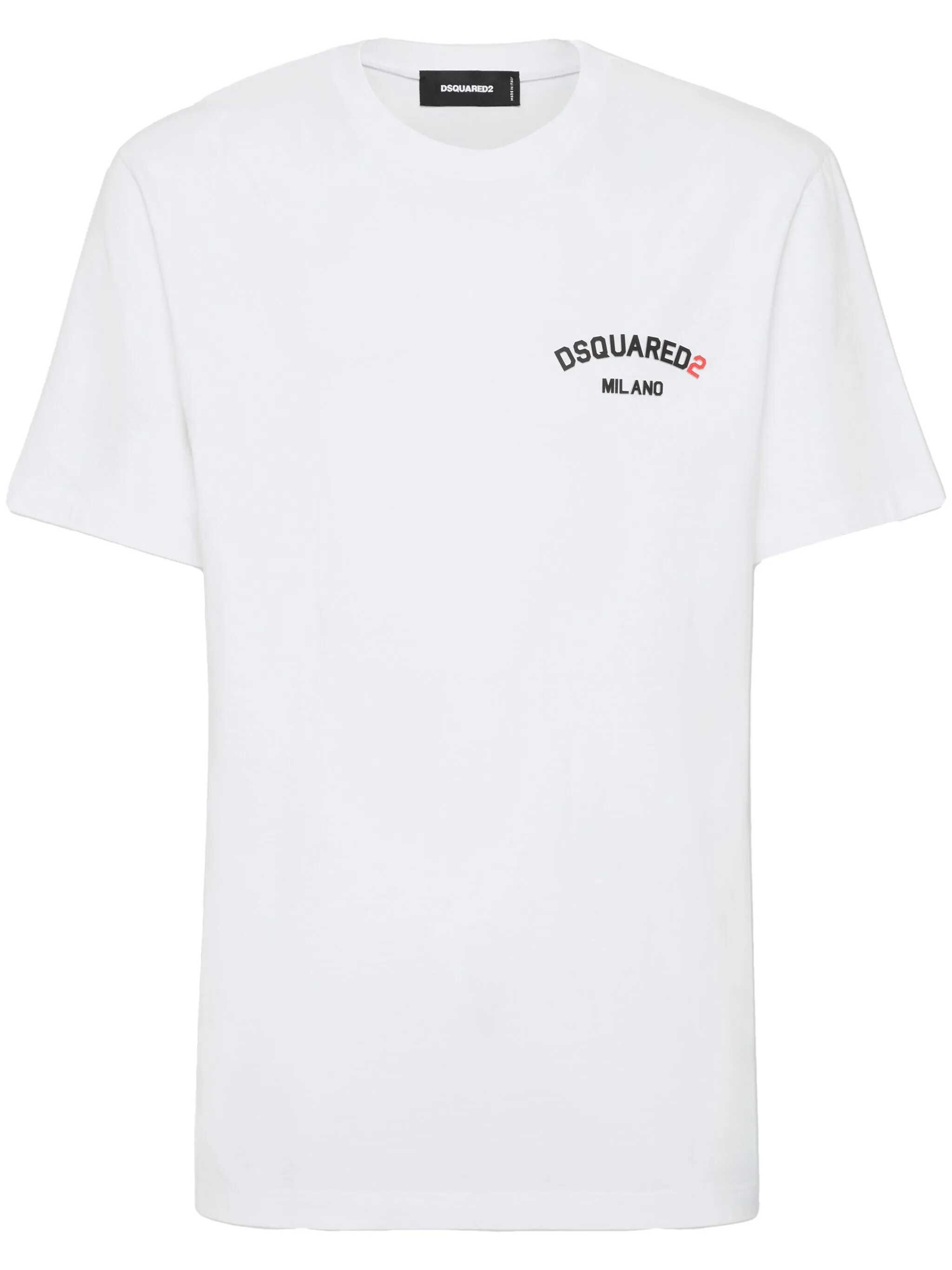 Dsquared2 t-shirt crafted from white cotton jersey with contrasting logo print on the chest. It features a crew neckline, short sleeves, and a straight hem.