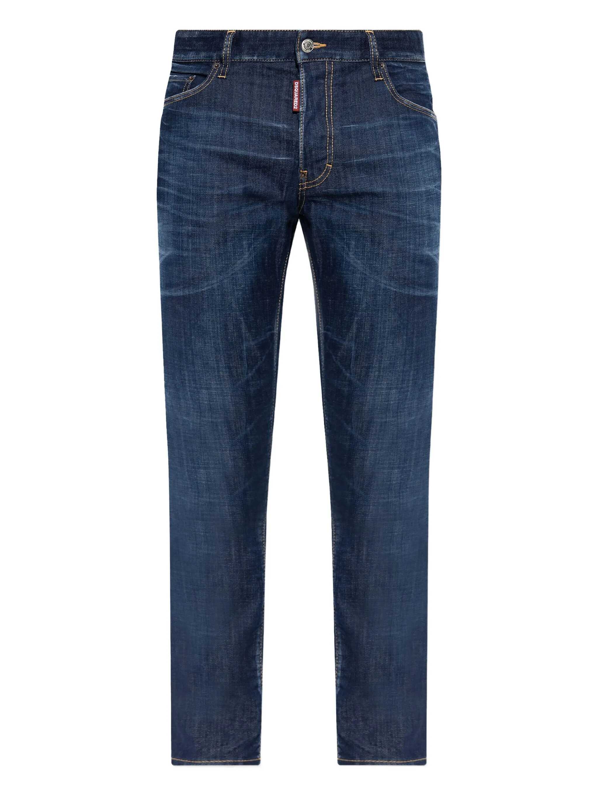 'Skater' stretch cotton denim jeans with button closure, five leather logo tag